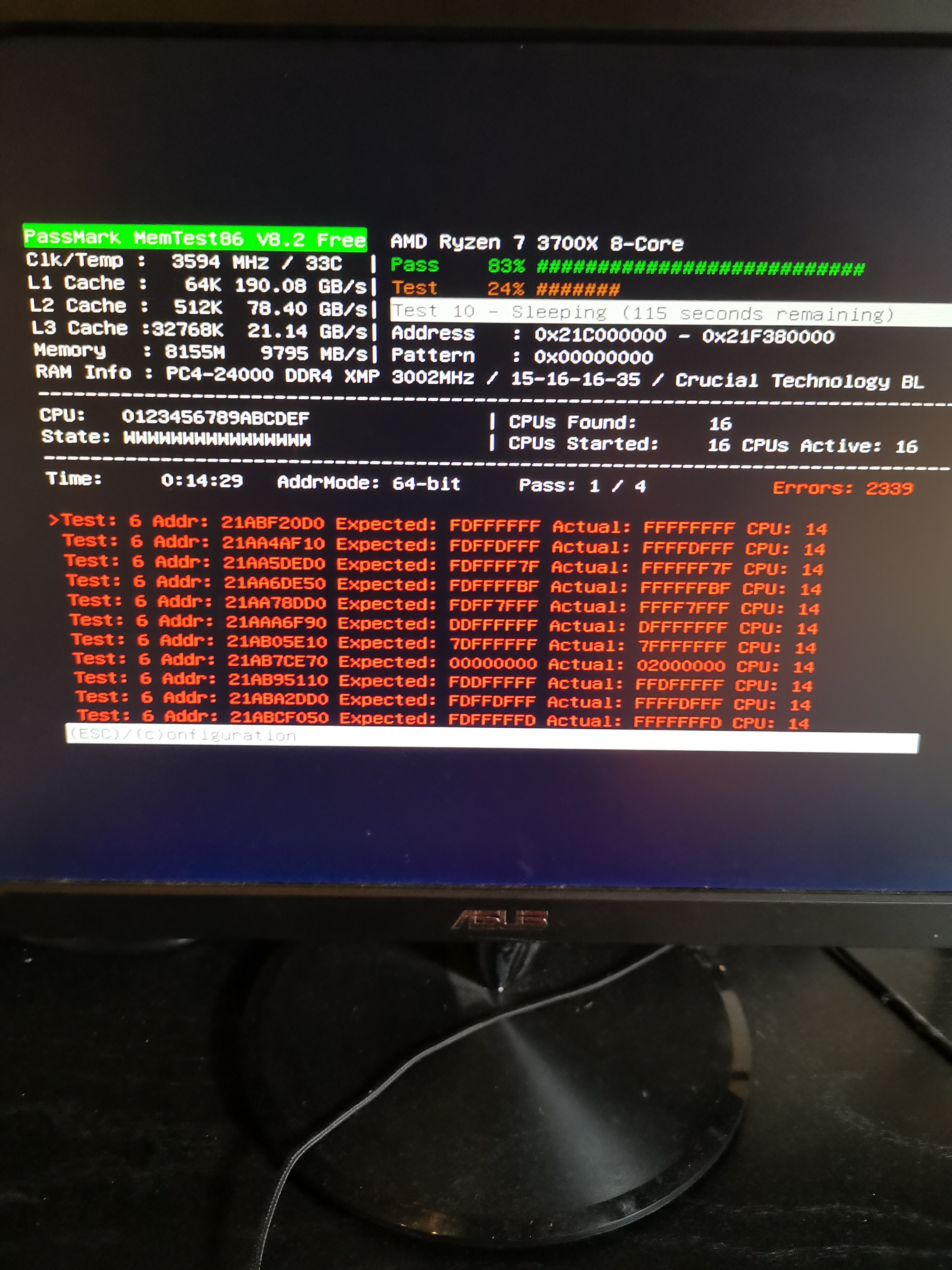 Ok, Memtest spuckt schon Fehler aus...