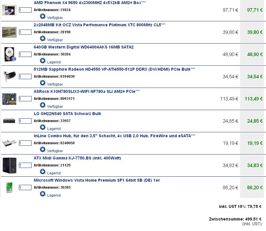 Diese Zusammenstellung ist keine Kaufempfehlung für irgendjemanden! Ich habe die Komponenten ohne groß nachzudenken zusammengewürfelt. Wollte nur den Preis erfahren.