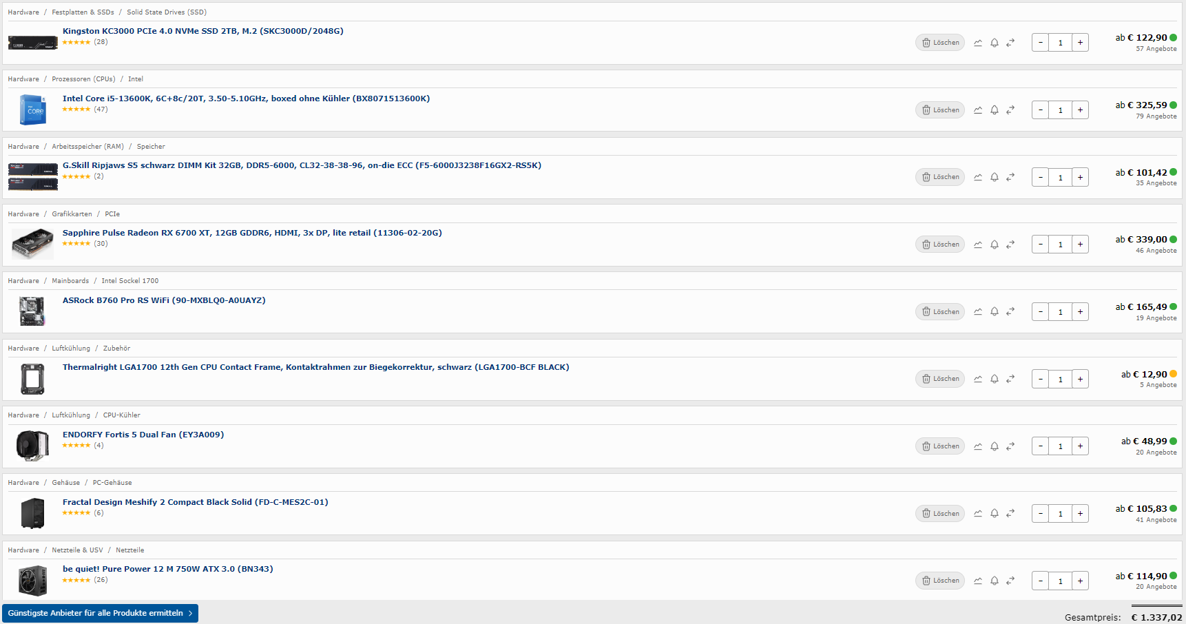 Ich habe bereits einige Wochen recherchiert (auch hier auf CB) und füge meine geplante Konfiguration als Screenshot an. Freue mich über Kommentare oder Verbesserungsvorschläge dazu.