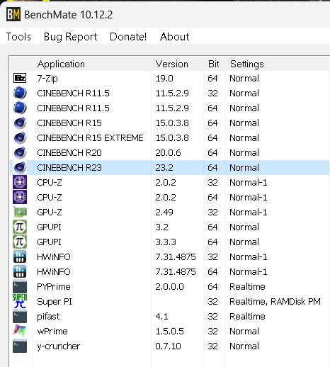Hier sind verschiedene Benchmarks enthalten: BenchMate 10