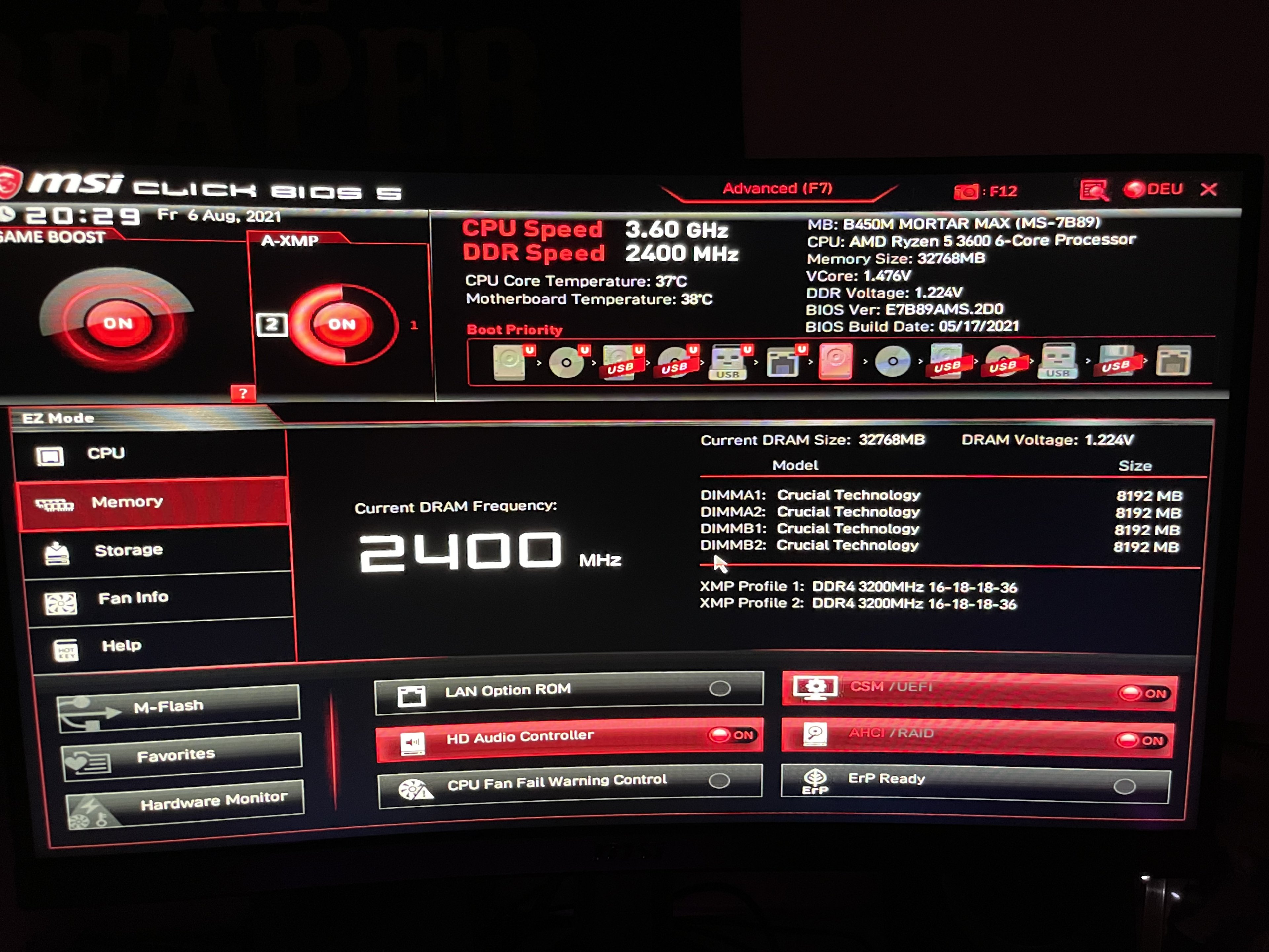 Ich hätte da ein anliegen und komme nicht mehr weiter. ich habe mir heute den Crucial Balistix Sports RGB gekauft mit 3600 mhz !