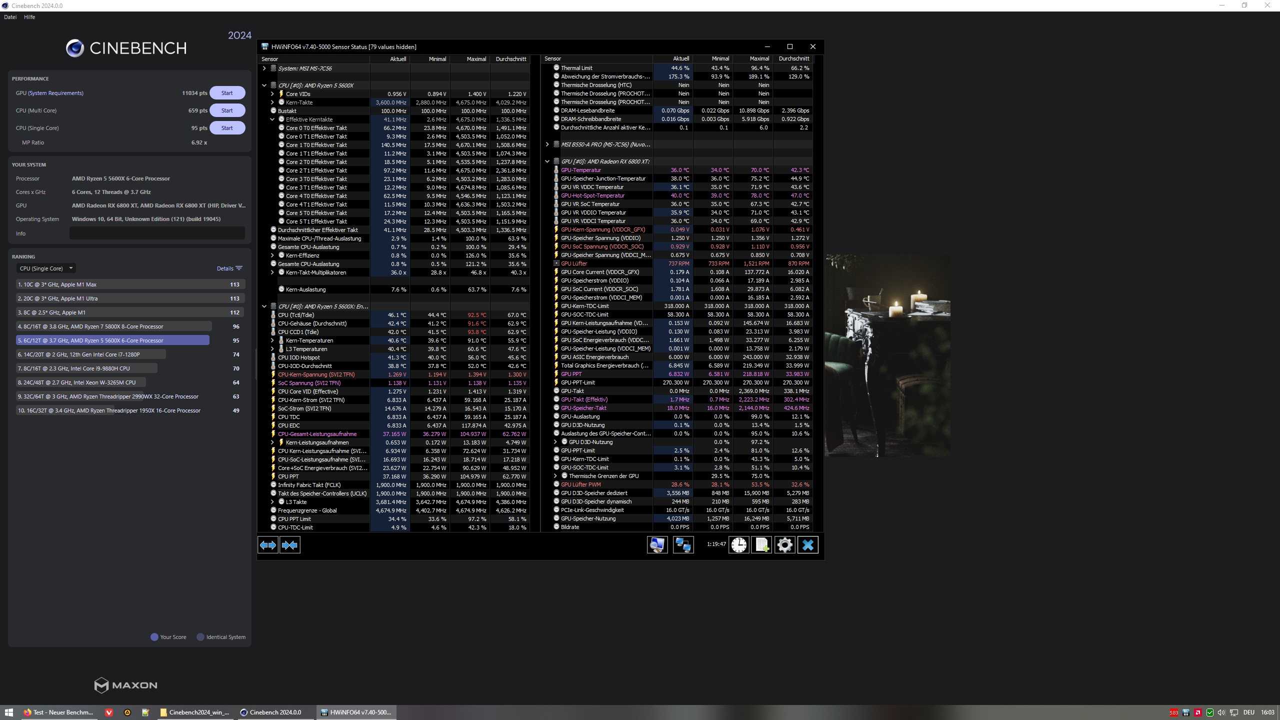 Nochmal Nachtest. Meine CPU Werte sind schon konstant. GPU jetzt auf 5607 Pkt. Test mit CB24 in der Ramdisk, Global C-states off und CPPC Prefered Cores off durchgeführt. Powerplan = 5800X3D.pov.