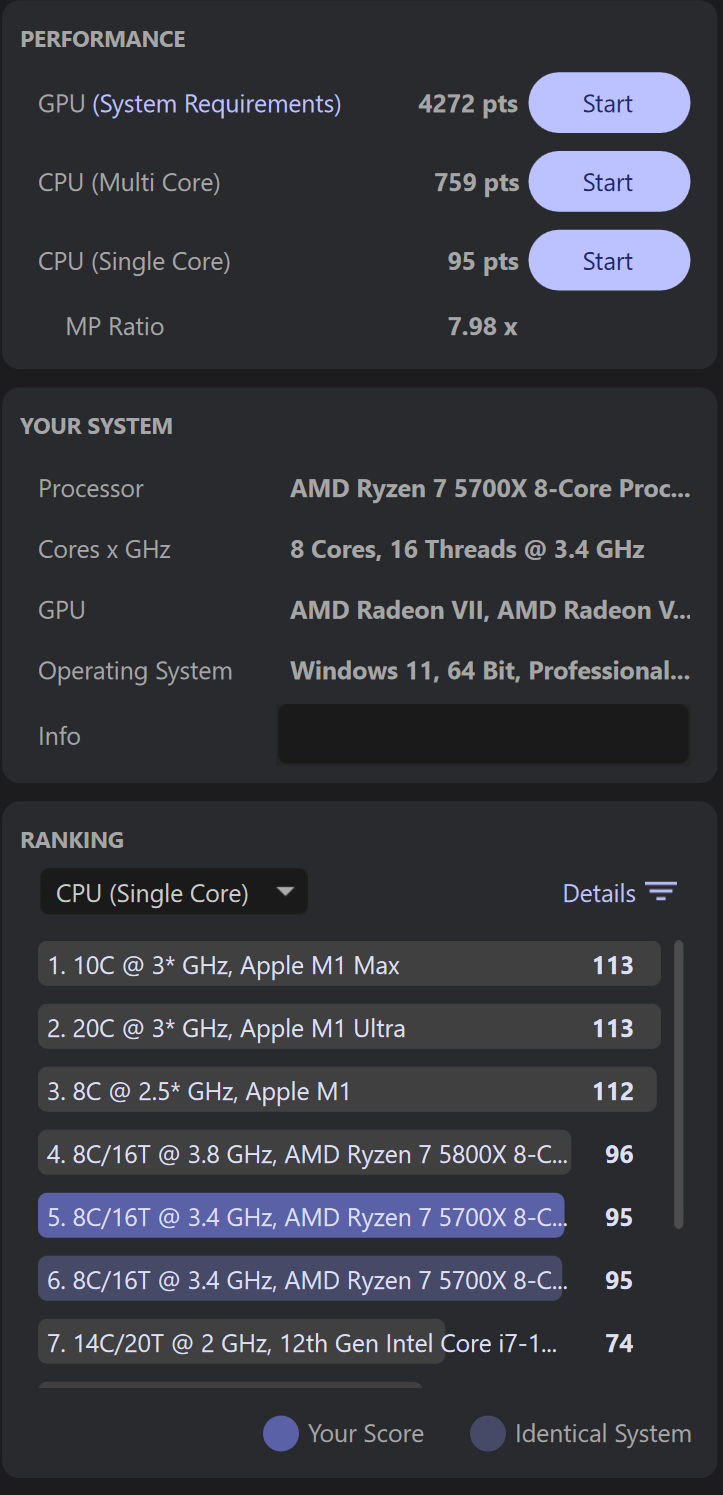 CPU-Ergebnis (Single-Core): 95