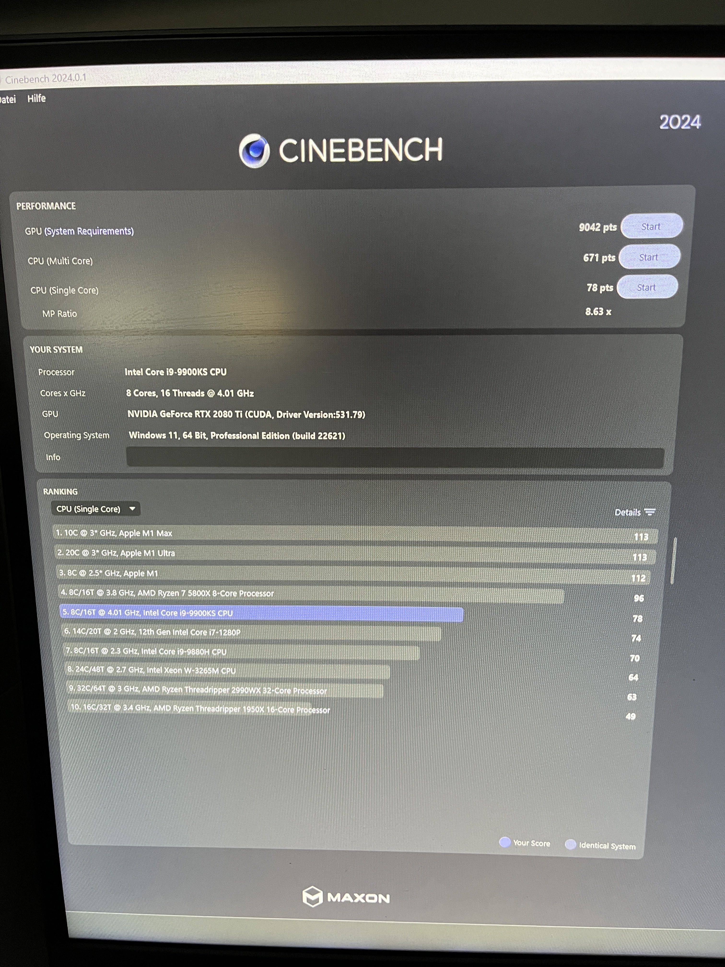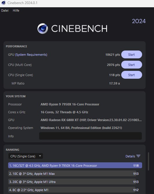 Wie viele Cinebench R23 Punkte erreicht denn dein CPU?