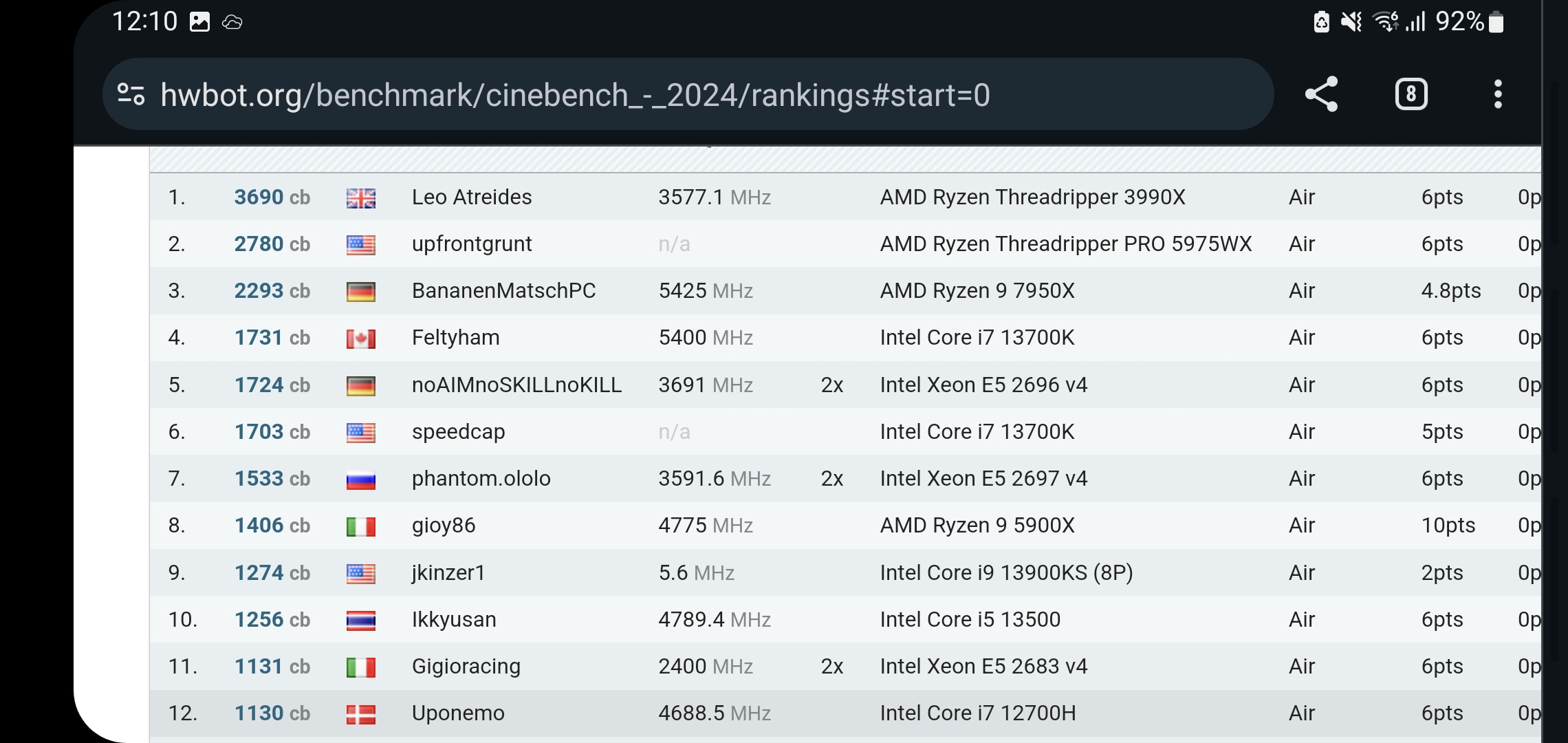 Via HWBot sehen die Ergebnisse unter Luft auch für mich persönlich seltsam aus: