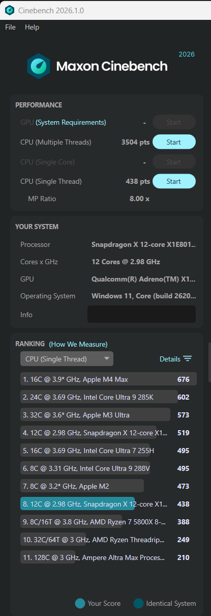CPU-Ergebnis (Single Core): 482