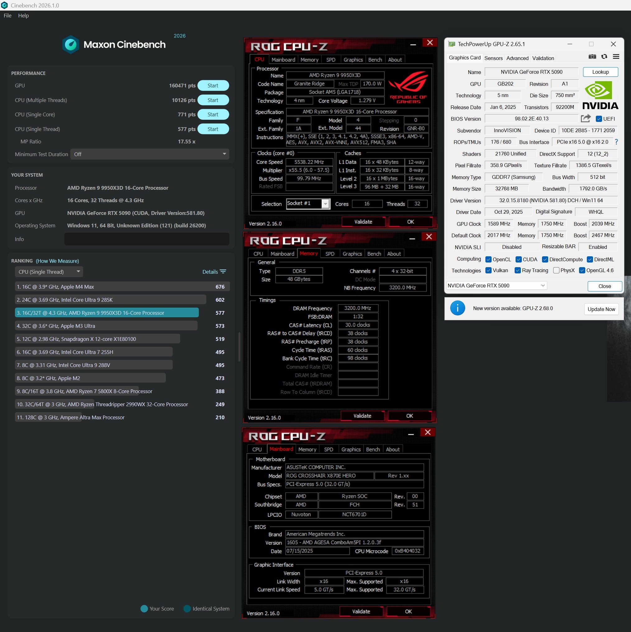 Verwendet wurde ein ASUS ROG STRIX X870E-E GAMING WIFI, 2x 32GB DDR5-6400 CL32 und eine MSI RTX 5090 32G VENTUS 3X OC.