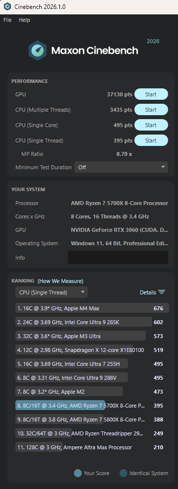 CPU-Ergebnis (Single Thread): 537