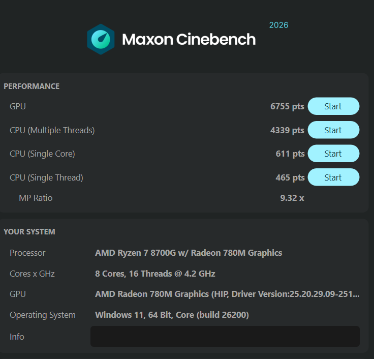 System: 8700G, 780M, 32GB
