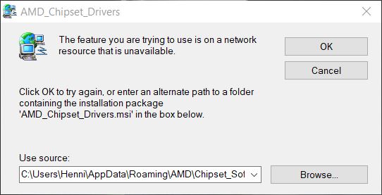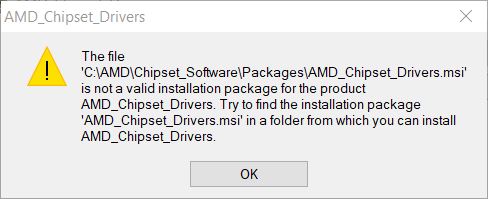 Wenn ich den Installer von einem anderen Ort aus starte, erscheint die Meldung auf dem dritten Screenshot (not a vaild installation package). Warum diese msi auf dem Netzwerkpfad landet und die eigentlichen Installationsdateien auf 'C:\AMD\Chipset_Software\Packages\', ist mir ein Rätsel. Ich müsste wohl jeden Installer einzeln starten, damit es funktioniert.