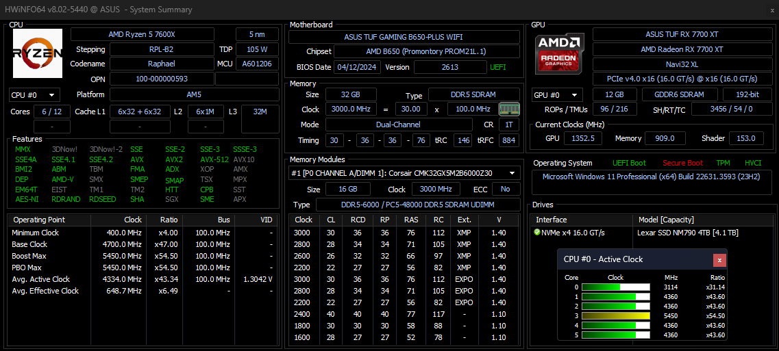 Alle Komponenten werden korrekt im Bios und in Windows angezeigt. Windows wurde geupdatet und Treiber wurden über die AMD Software geupdated.