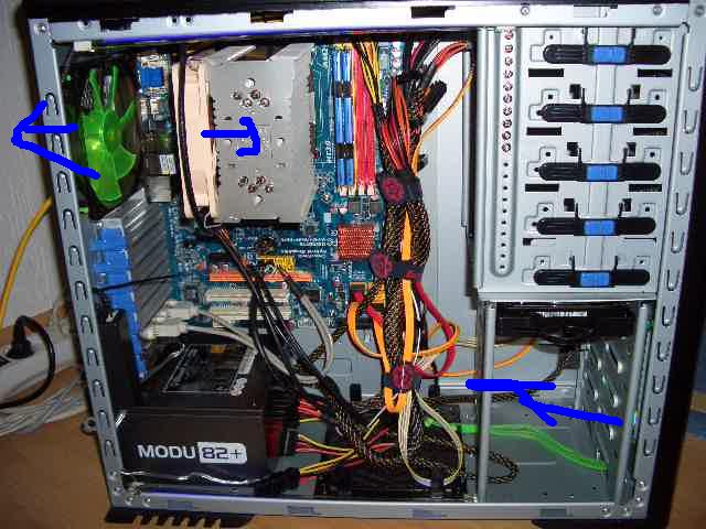 Ich hab mal gezeigt wie es momentan aussieht ( die Pfeile sind die Lüftstromrichtingen)
