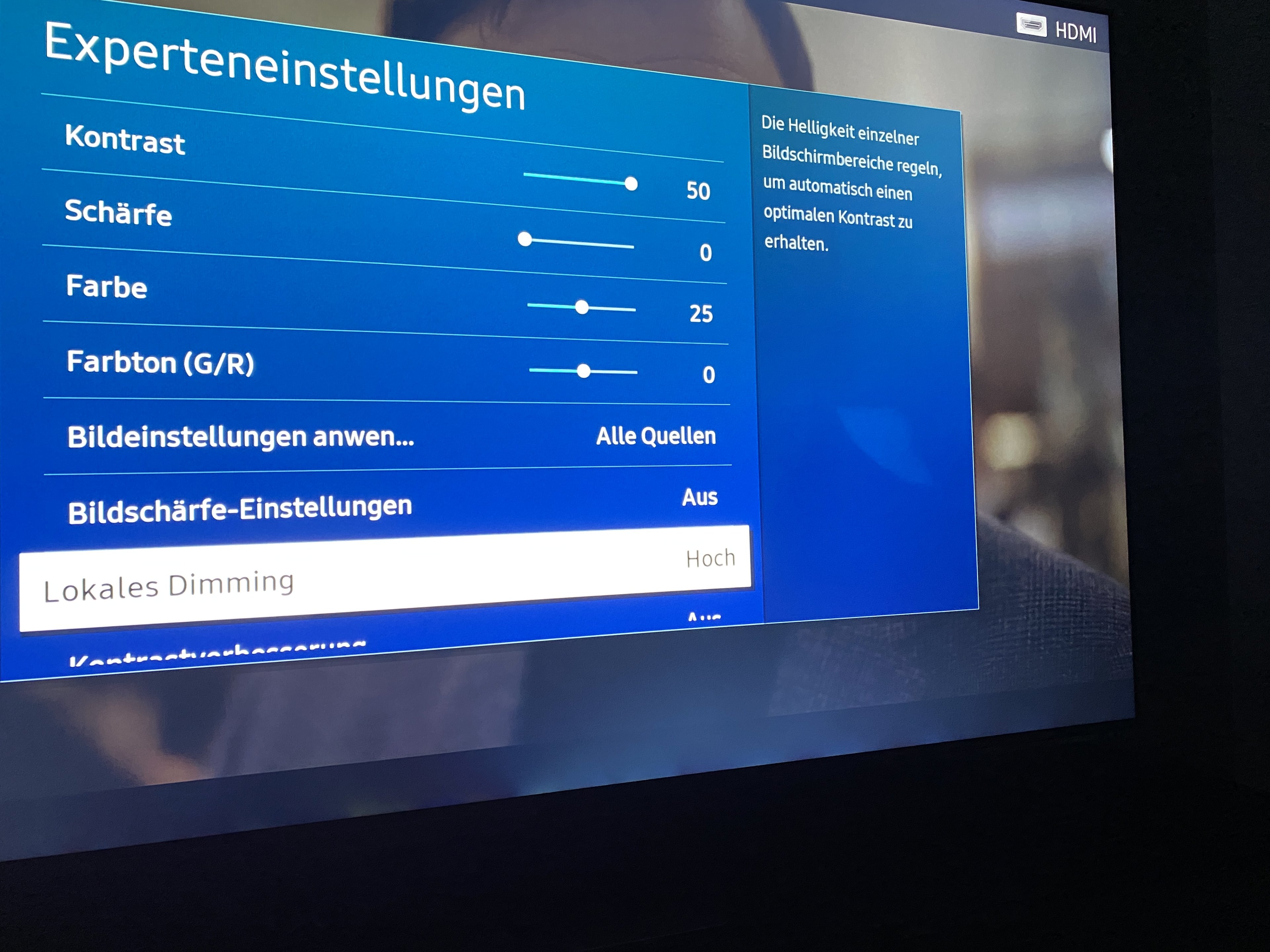 Bildeinstellung: Filmmaker Mode. Lokales Dimming habe ich alle drei Einstellungen ausprobiert.