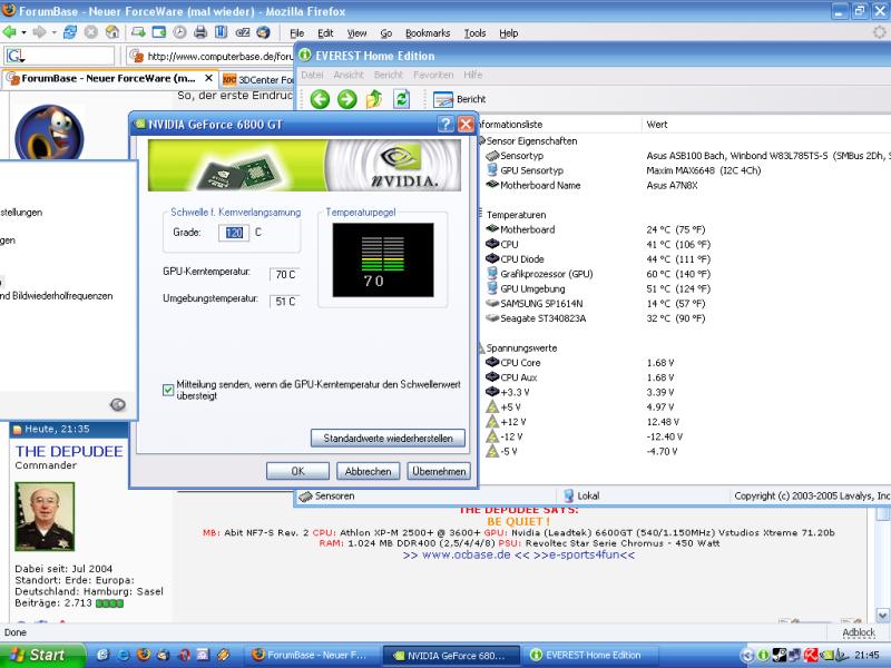 Edit2: Noch viel geiler: Nur der Treiber zeigt jetzt 10° mehr an. Everest zeigt die alten Werte an. Und die Grafikanzeige im Treiber ist auch noch die alte, die zeigt nämlich immer noch die zum alten Wert passenden Farben an.