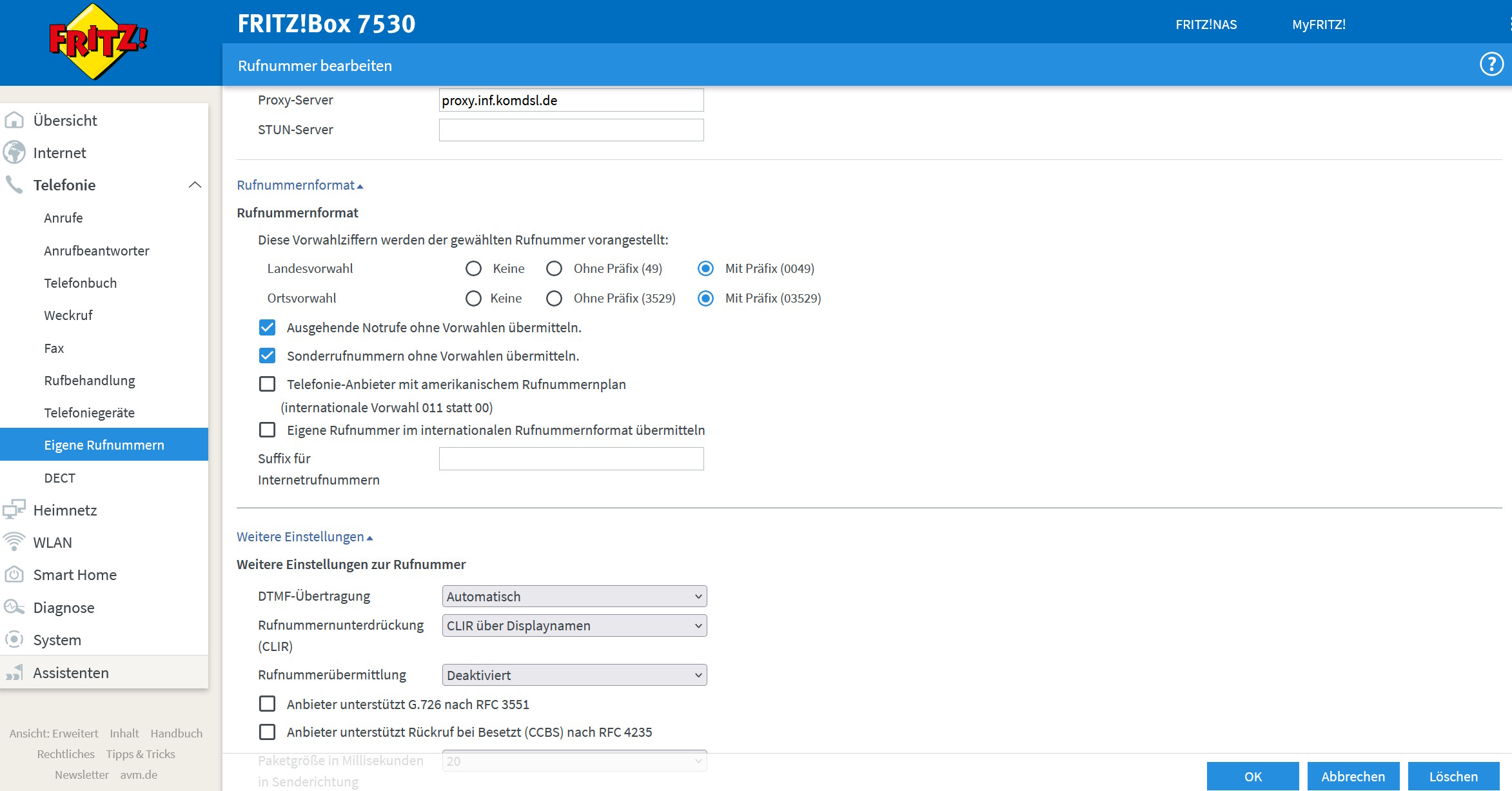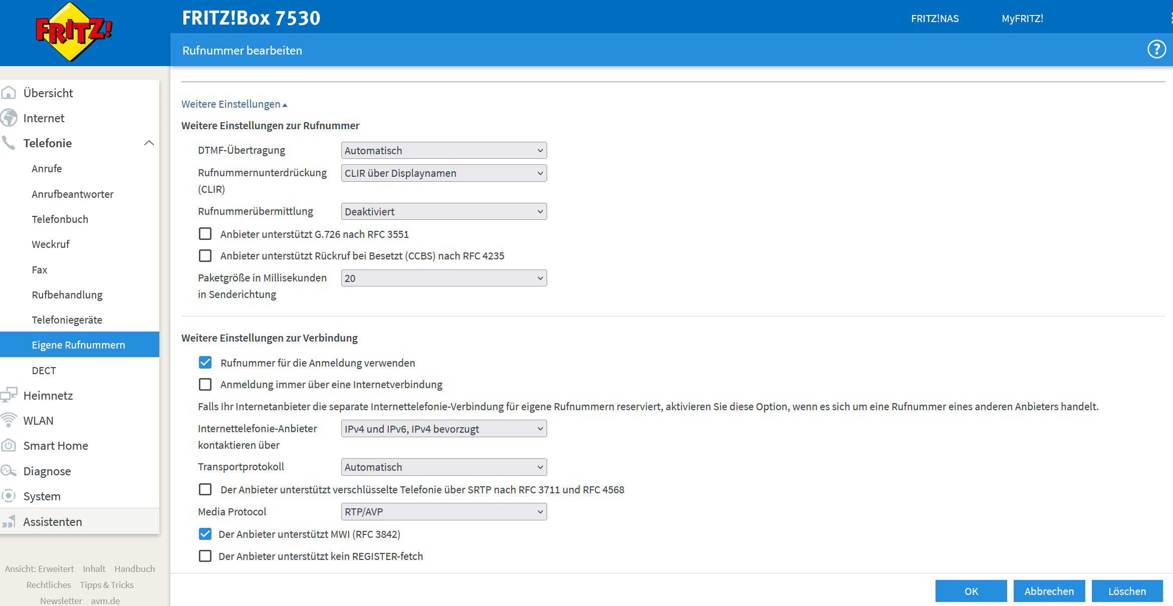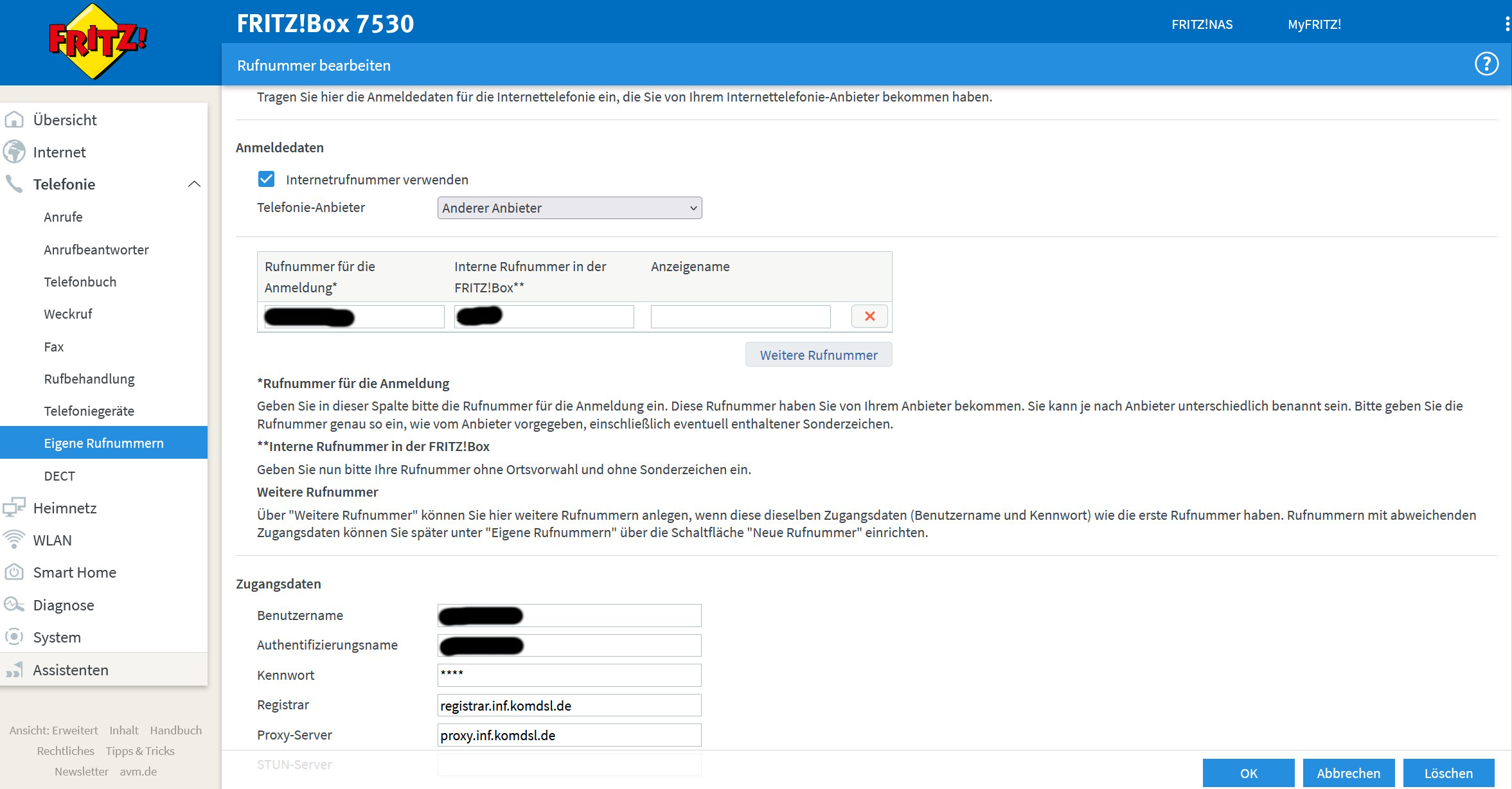 Beim alten setup habe ich sowohl das telefon als auch die registrierungsdaten in der 7530 geabt.