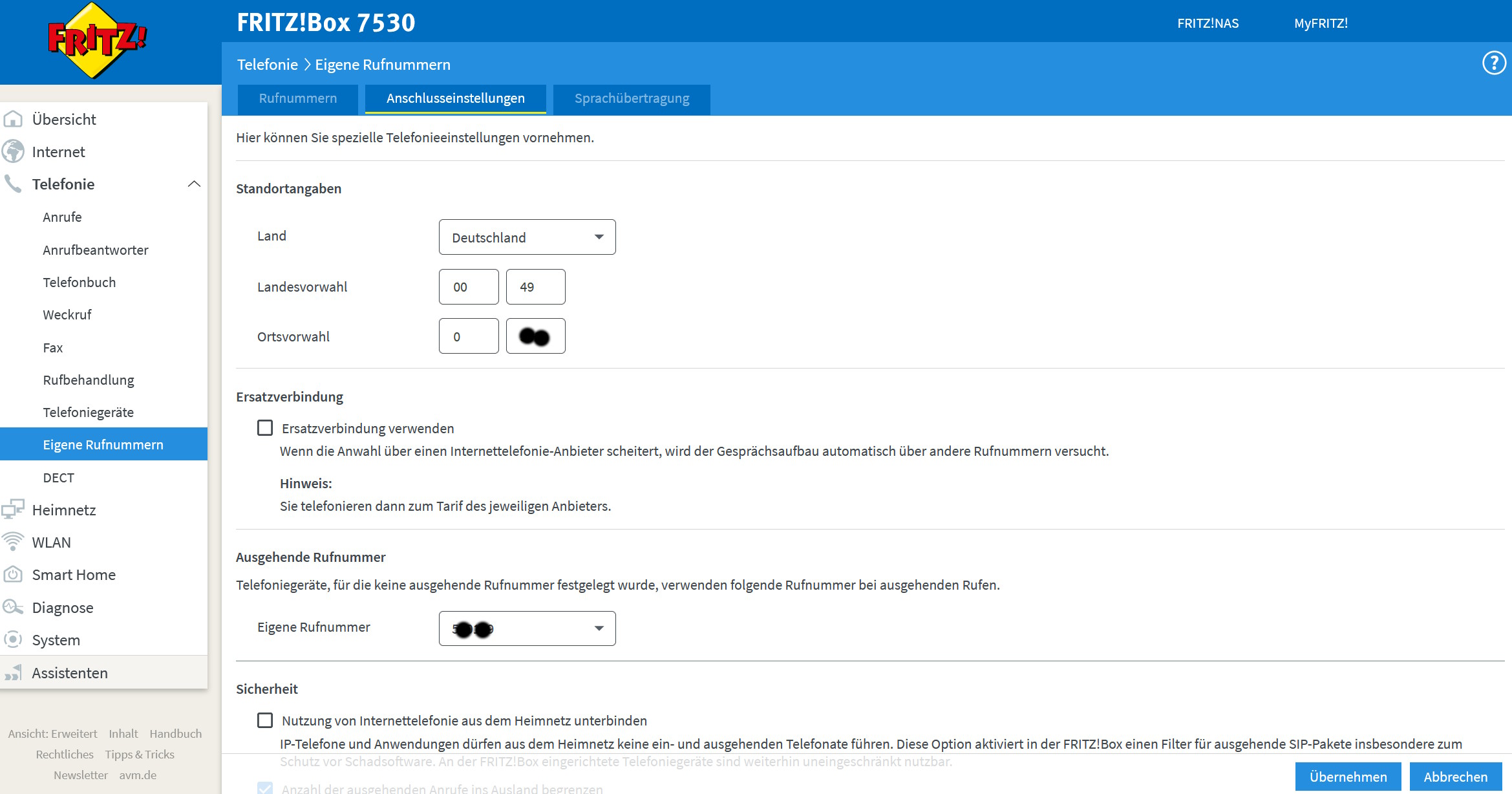 Muss die telefonnummernregistrierung im router 0 eingegeben werden oder dort wo das festnetz angeschlossen ist?