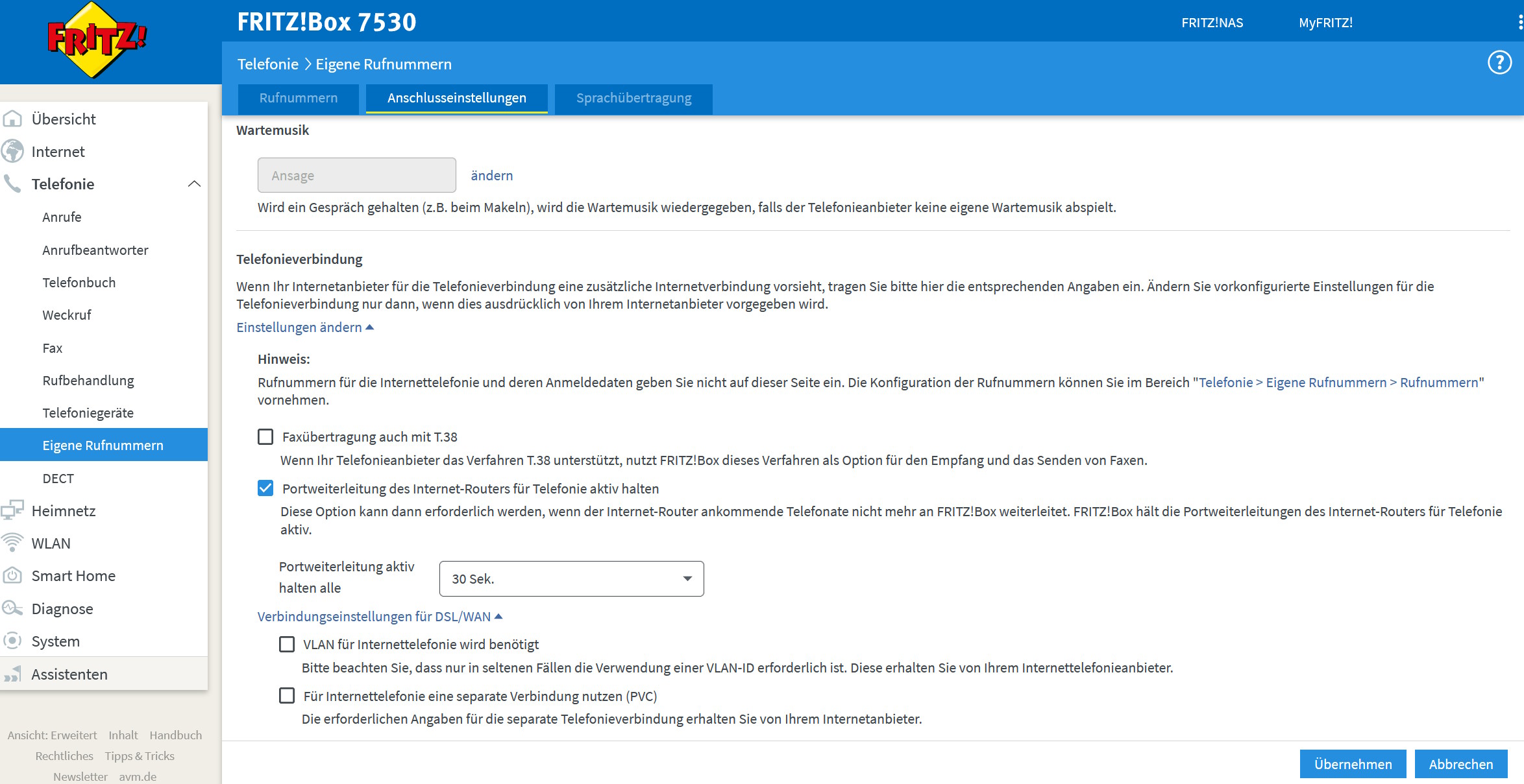 Das neue setup aus 5530 (hauptrouter mit dhcp und ftth anschluss) und der 7530 als accesspoint und daran angeschlossenen festnetztelefon funktioniert leider nicht so ganz...