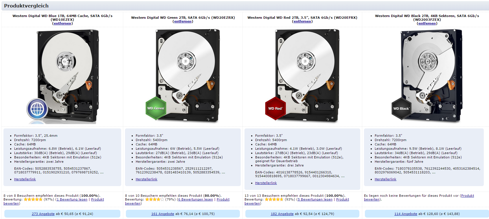 2 x Western Digital WD Blue 1TB, 64MB Cache, SATA 6Gb/s (WD10EZEX)