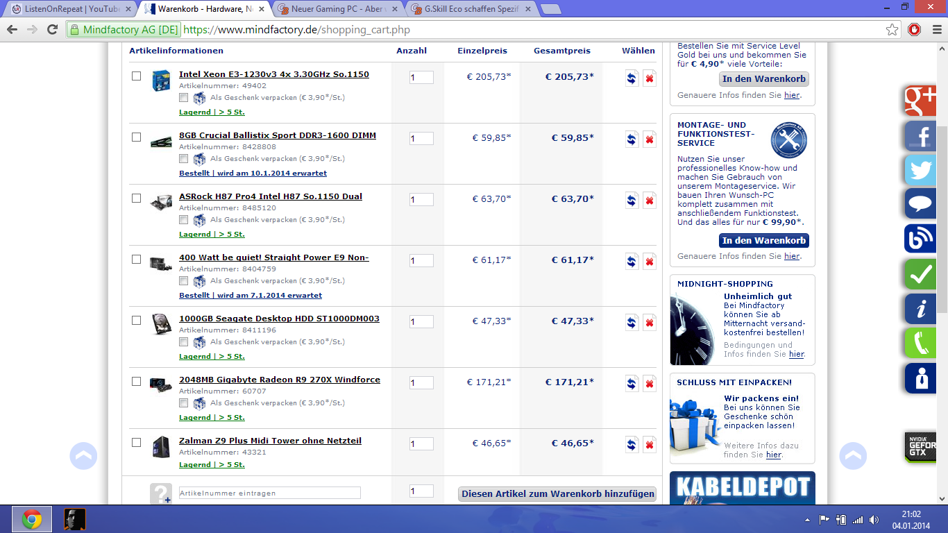 Wegen Gehäuse...wie gefallen dir denn folgende: http://geizhals.de/?cmp=943578&cmp=965773&cmp=736663&cmp=888458&cmp=994528&cmp=896216&cmp=812617