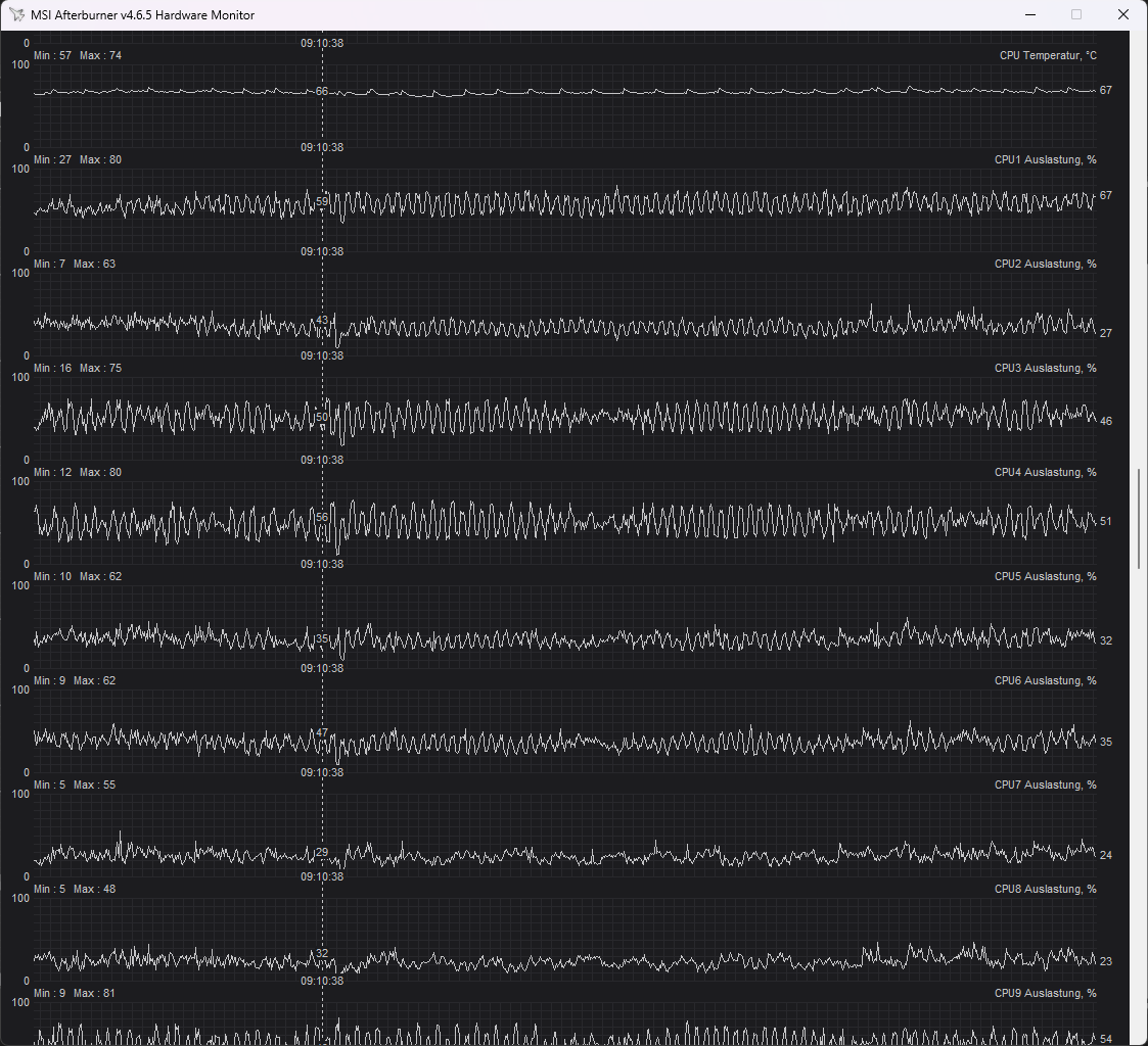 - GPU läuft auf ca. 50 C (RTX 4070 SUPER)
