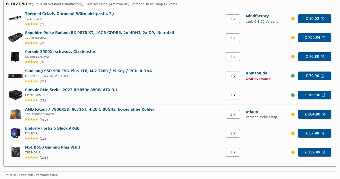 Bei der 9070 XT könnte man mit der Hellhound noch etwas sparen und die ist auch ein gutes Custom Design.