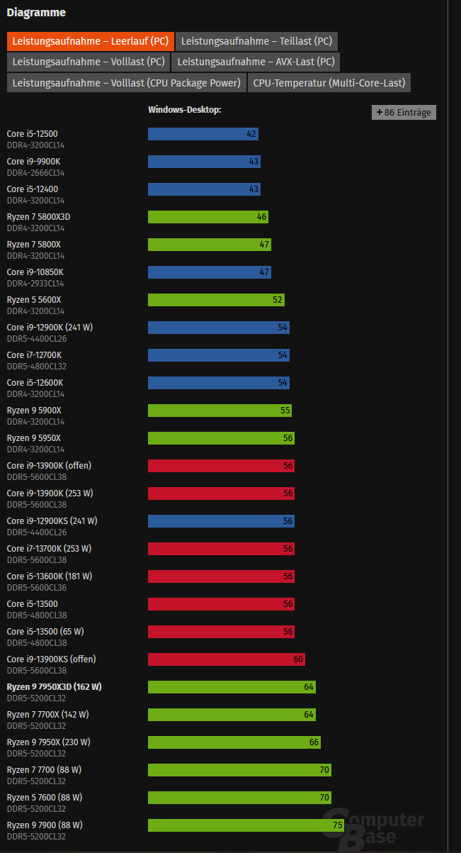 Viel Spaß mit diesen (frisch installierten) Labor Werten. Mein 13700K zieht an der Steckdose 50W (incl. 4090) und beim surfen im Schnitt +3W.kurfuerst1982 schrieb:Idleverbrauch 13900k = 56W vs. 7950X3D = 64W -> AMD 8W mehr