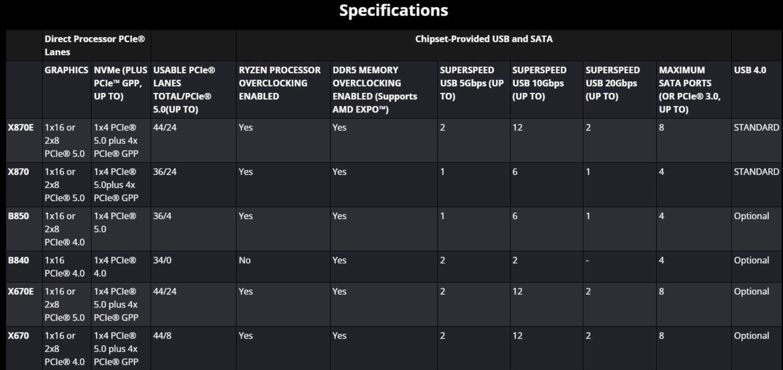 Am meißten bin ich mir gerade bei dem Mainboard unsicher, in dem Forum habe ich jetzt verschiedene Vergleiche von X870, B850) wo ich jetzt nicht wirklich durchsteige. Soweit habe ich verstanden das die B Serie bessere USB haben. Ich nutze grundsätzlich USB für Audioanschlüsse und die ganze Peripherie weshalb ich da auf USB4 gut verzichten kann.