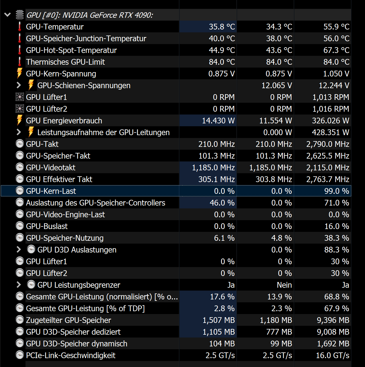 - GPU Temperatur kontrolliert (Hotspot 58°C)