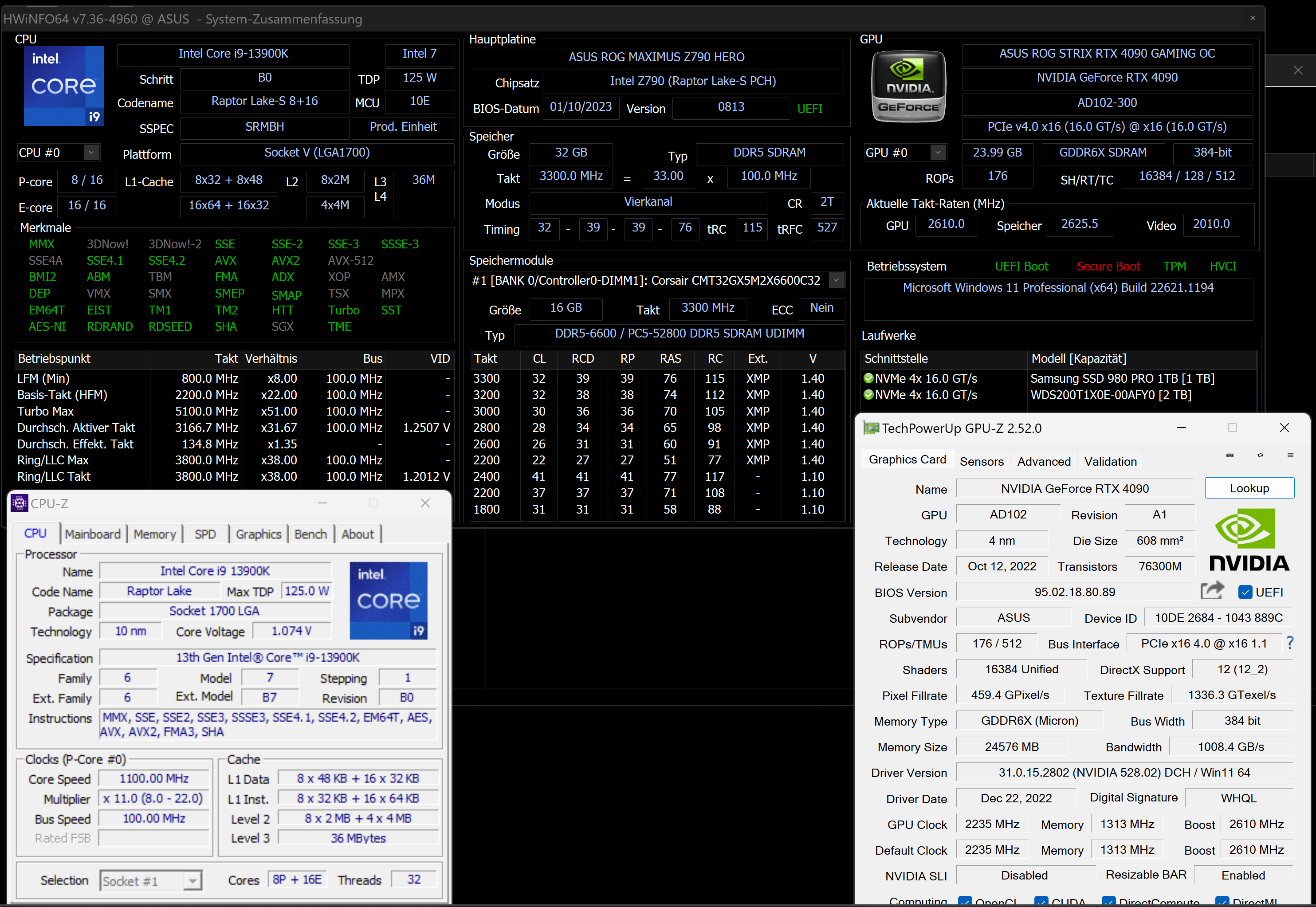 Intel i9-12900K> Intel i9-13900K - GPU: Asus ROG Strix 4090 OC