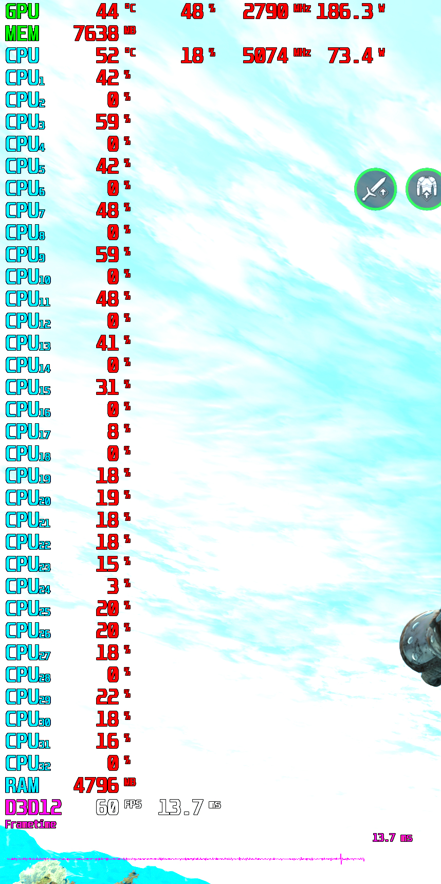 Auffällig ist, dass Ladebildschirme in allen Spielen extrem ruckeln und die Framerate mehrfach für 2-3 Sekunden auf 0 droppt. Manchmal können in Ladebildschirmen sogar das OSD von MSI Afterburner und die RGB Beleuchtung für einen kurzen Moment einfrieren. Zum testen nehme ich meistens Forza Horizon 5 her, weil der Ladebildschirm animiert ist und man die Diashow sofort sieht. Ein einziges Mal hatte ich Glück und der Ladebildschirm lief bis zur Hälfte flüssig.