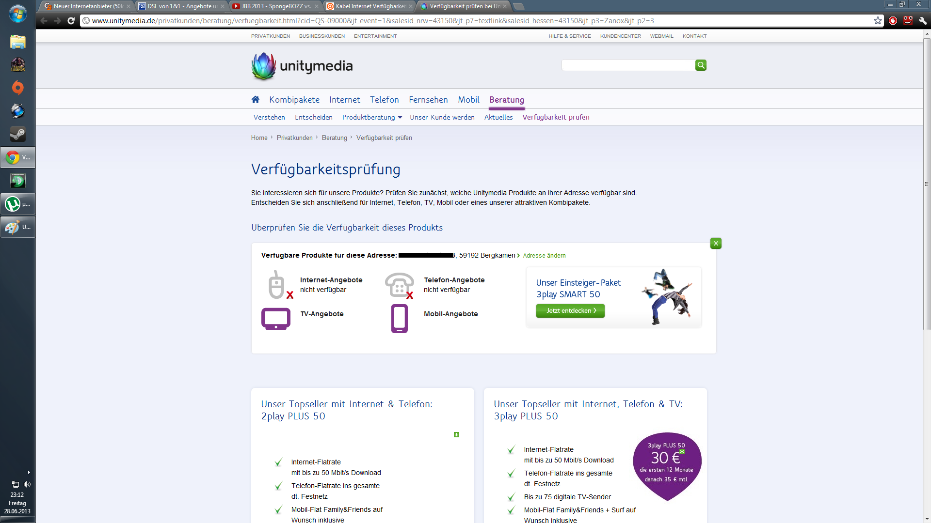 ) - Ich hätte gerne mindestens eine 50.000er Leitung Download und ich schätze minimal 2 MB Upload. Ich suche KEINE Komipakete von wegen TV, Telefon, Handy usw. - Wlan auch nicht unbedingt nötig. Schön wären 100k Download und 5 MB Upload, aber es sollte im Preisrahmen von etwa 30€ monatlich sein. Ich hab mich umgeschaut und war eigentlich an Internet 100 von Unitymedia interessiert, aber die Internet 10-50-100, also alle 3 sind bei mir nicht verfügbar. Blöd. Ich weiß nicht ob ich alle wichtigen sachen geschrieben habe, falls nicht bitte fragen und ich schau nach, falls ich dazu kompetent genug bin. Ich habe nach speedtest momentan 6k download und ich habe 0,2 der 0,3 upload - grottig, besonders weil ich gerne auf youtube videos hochlade und den ganzen tag mal sachen wie games runterlade oder sonst mal zocke und dann grottigen ping habe. Ich hoffe mir kann irgendwer noch helfen, falls es nicht zu spät ist.