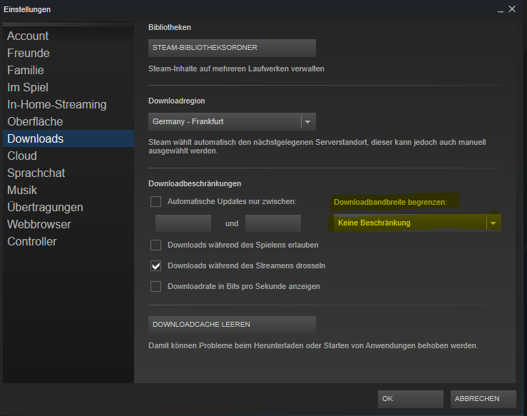 Bei Steam hab ich durchgehend 1,1 - 2,9 Mb/s (was wohl normal sein soll) im Download. Nebenbei kann ich dann aber garnichts mehr machen, Seiten laden nicht mehr und der Speedtest kann nichtmal starten.