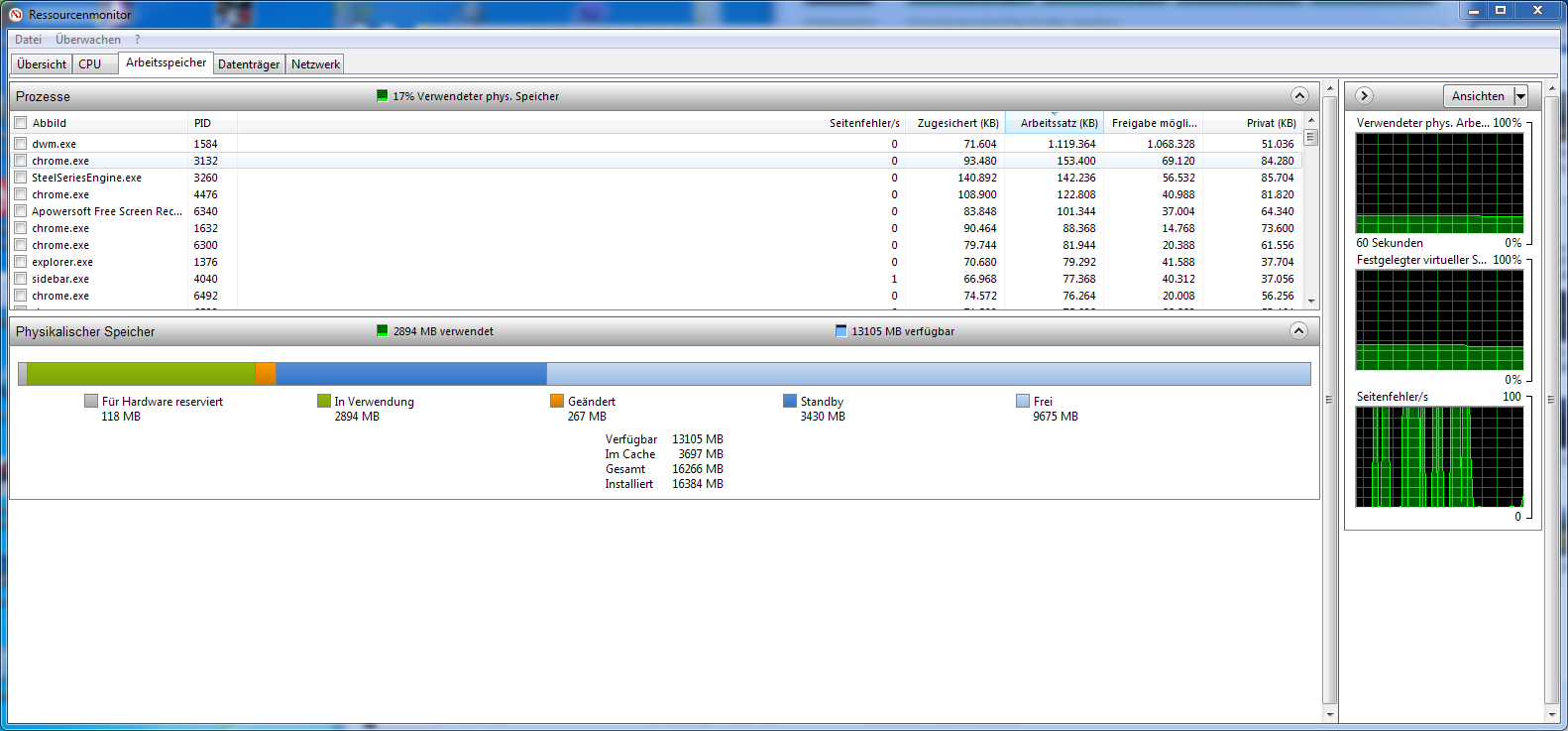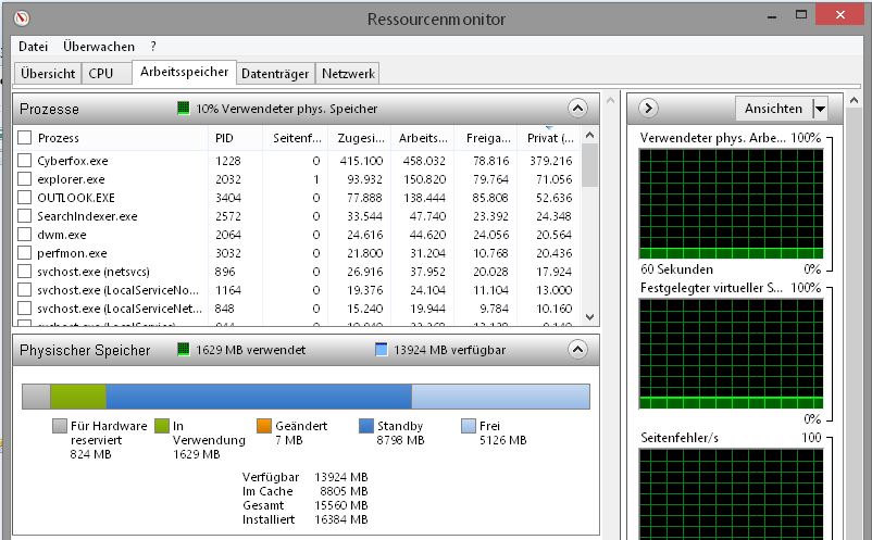 Ich habe schon im Task-Manager nachgeschaut, habe einen Screenshot vom Ressourcenmonitor gemacht.