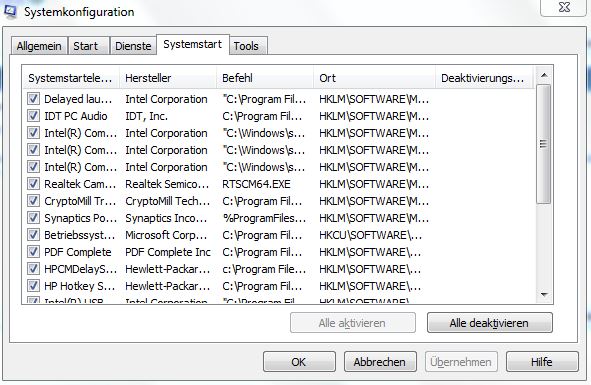 Kann das vielleicht an diesen ganzen HP Programmen liegen die ja schon oben sind? Oder müssten die dann nicht auch im Ressourcenmonitor angezeigt werden? Sorry, aber da kenn ich mich leider gar nicht aus.