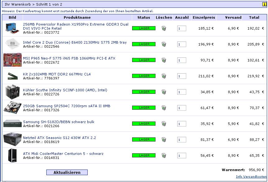 Ich hab mir nun schon einige Komponenten zusammengesucht, bin mir aber noch nicht sicher ob die zusammenpassen und ob die Preise ok sind(mindfactory).