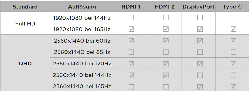 ABER: HDMI liefert bei mir nur 144Hz und nicht wie angepriesen 165Hz. Wenn ich schon so ein Gerät erwerbe möchte ich auch die volle Leistungsfähigkeit nutzen.
