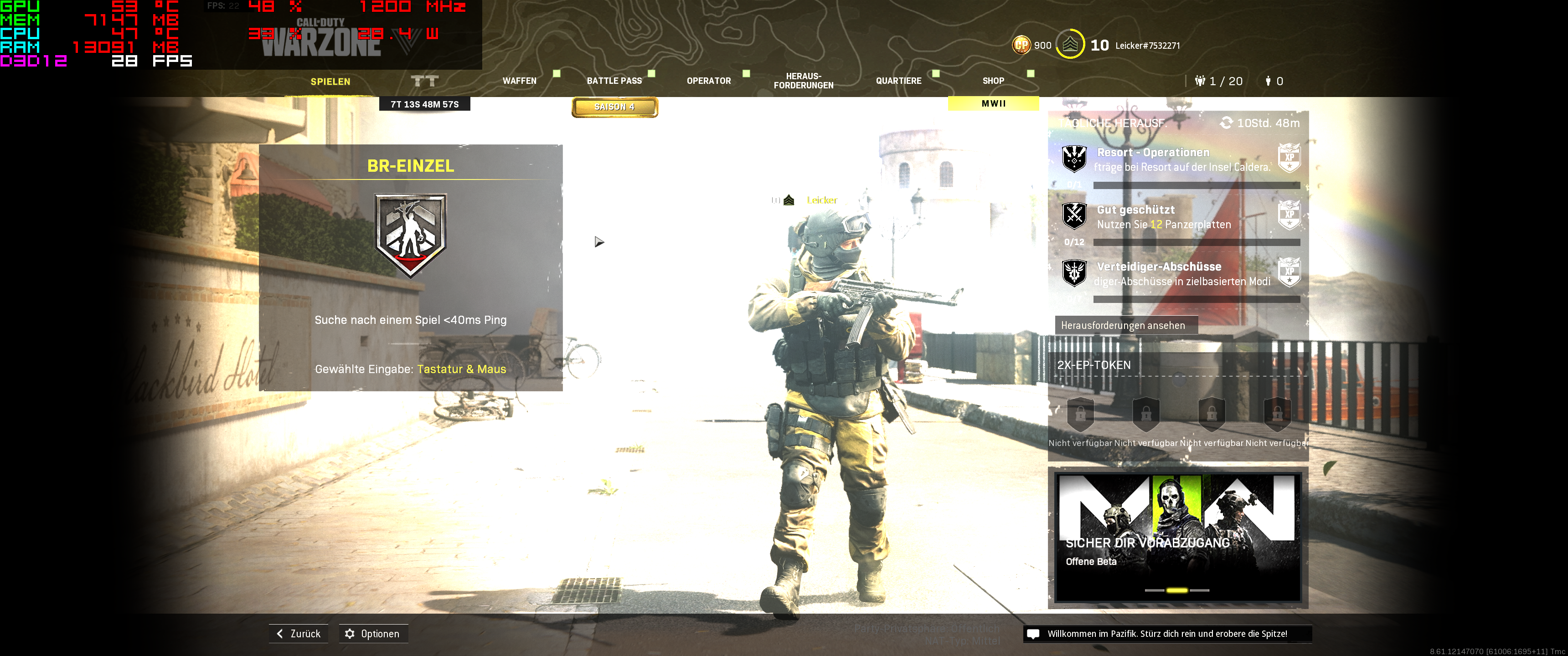 Folgende Dringe habe ich bereits ausprobiert. Die Textdatei im Warzone Ordner angepasst und im Bios das Arbeitsspeicher Profil aktiviert. Der Ram läuft im Dual Channel und mit voller Geschwindigkeit. Und Warzone Neuinstalliert.