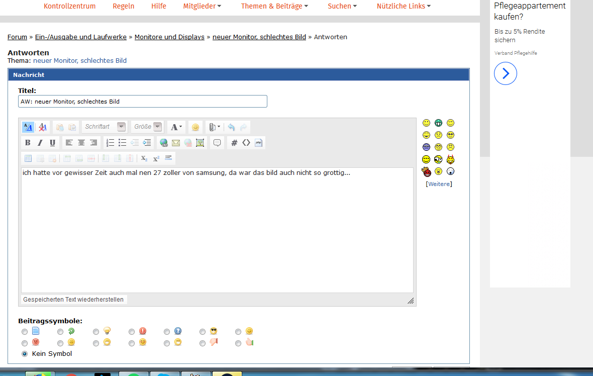 Guten Tag, ich habe mir den BenQ EW2775ZH 68,58 cm (27 Zoll) Eye-Care Monitor (1920 X 1080 Pixel, LED, Full HD, Slim Bezel, AMVA+ Panel) schwarz zugelegt. Leider ist die Auflösung, bzw das Bild mega unscharf, schlecht.... Ich hab eine Asus GTX 1080Ti und an meinen Monitor davor, war die Auflösung blendent... Hab schon an allen Möglichen Eigenschaften, nVidia usw rumgespielt... Keine Verbesserung... Liegts am Monitor? Er hat doch eigentlich super Bewertungen? Ist per HDMI verbunden, hab auch schon die Anschlüsse durchprobiert..