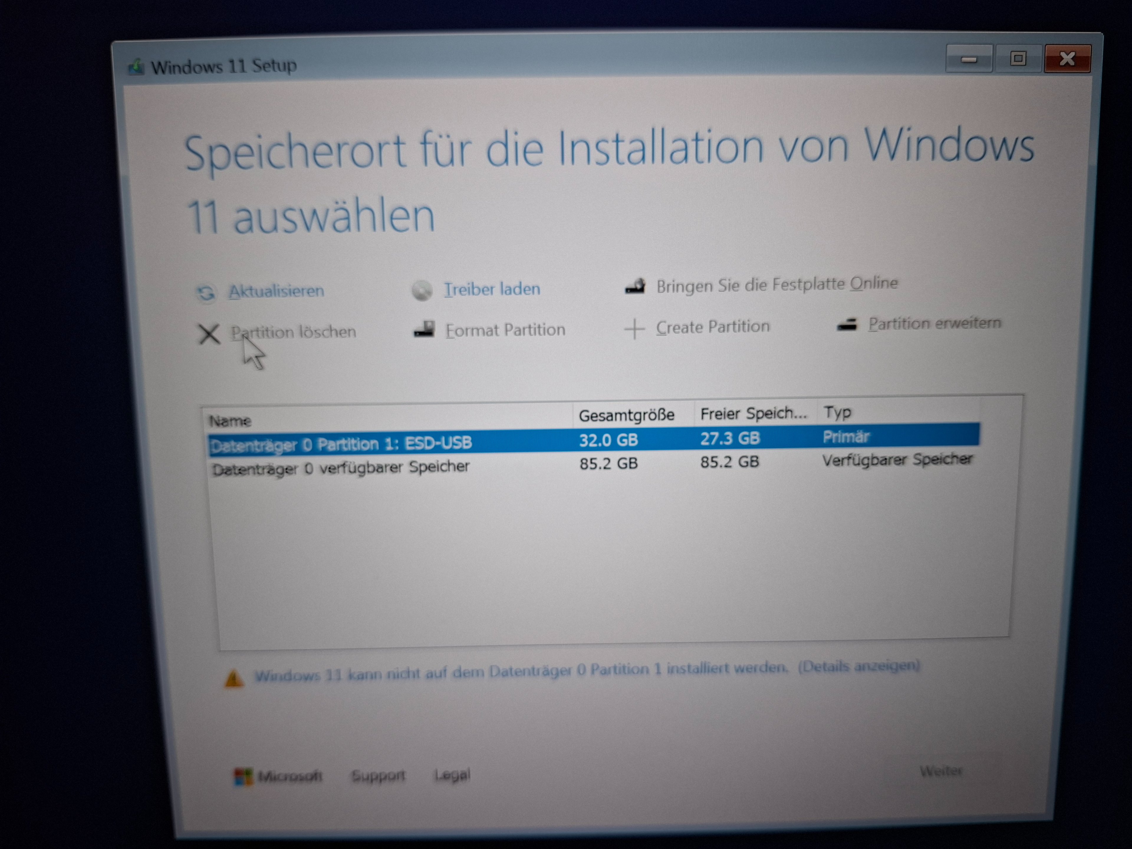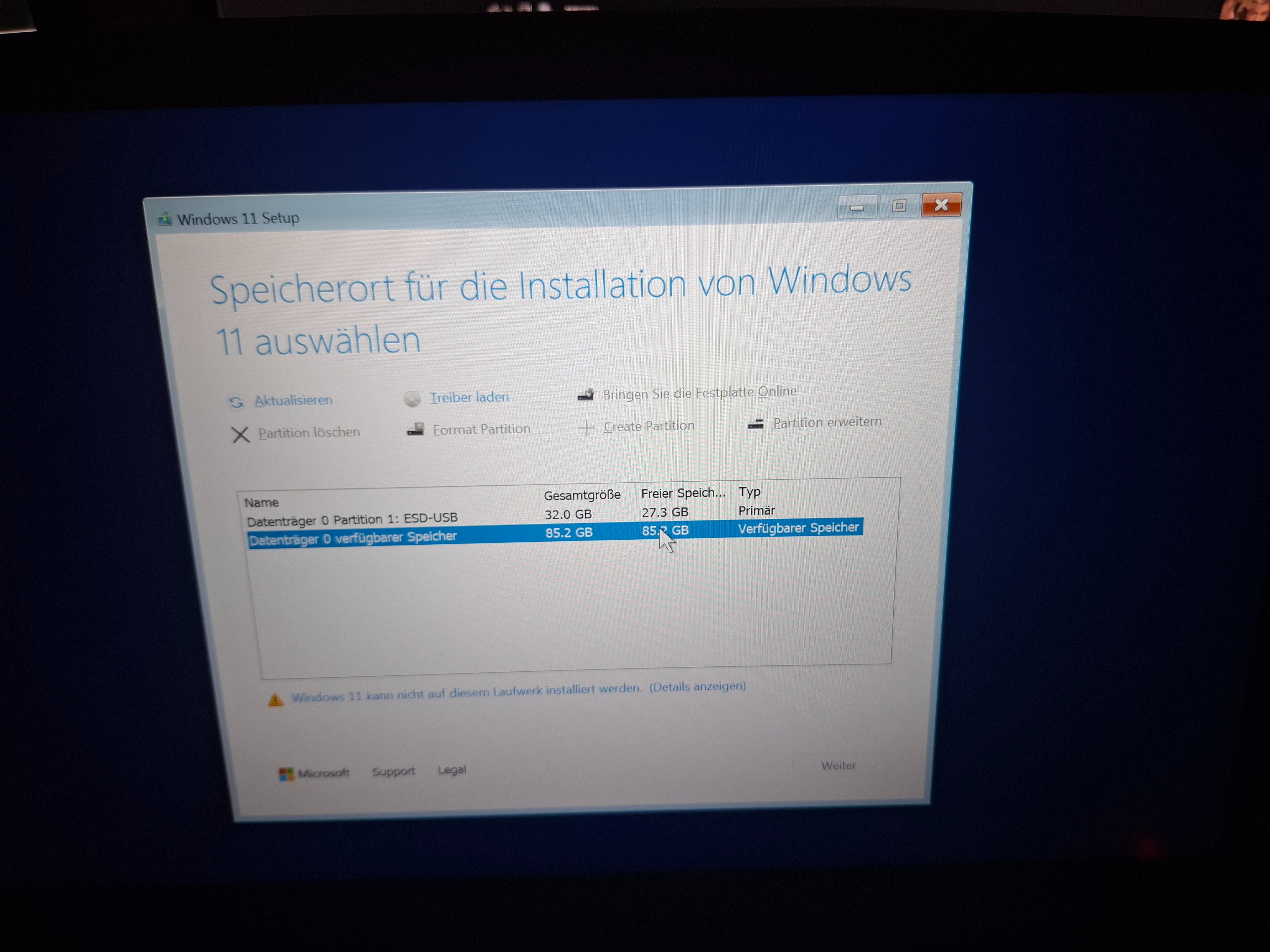 Ich kann windows 11 nicht auf mein msi laptop downloaden weil es keine Festplatten anzeigt.