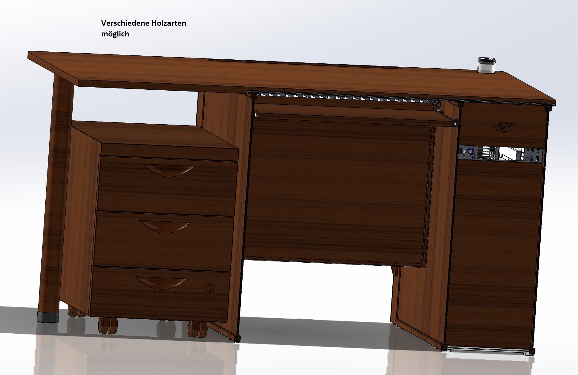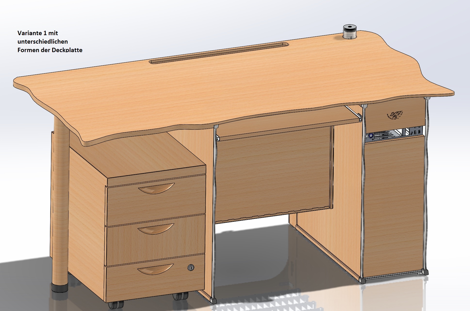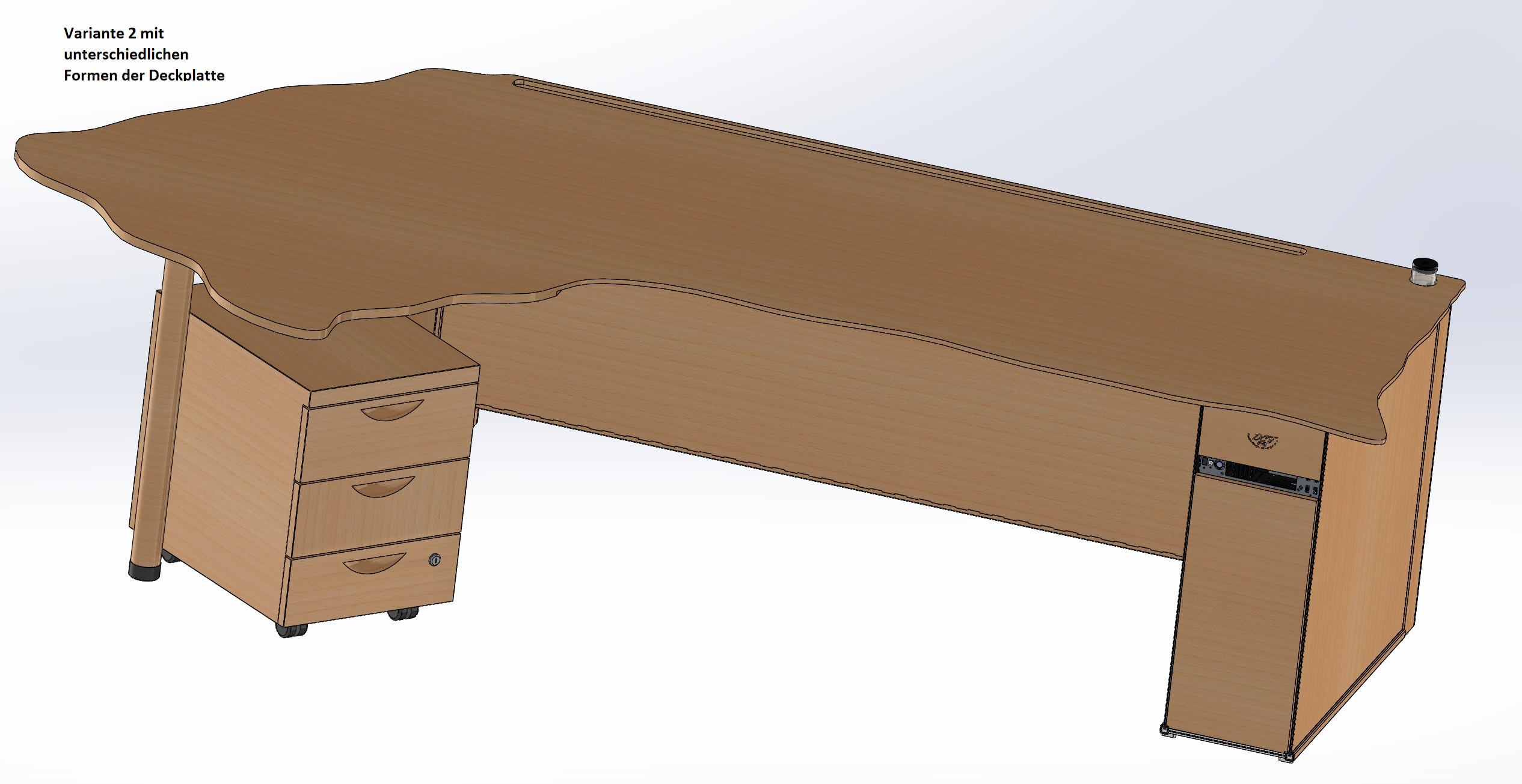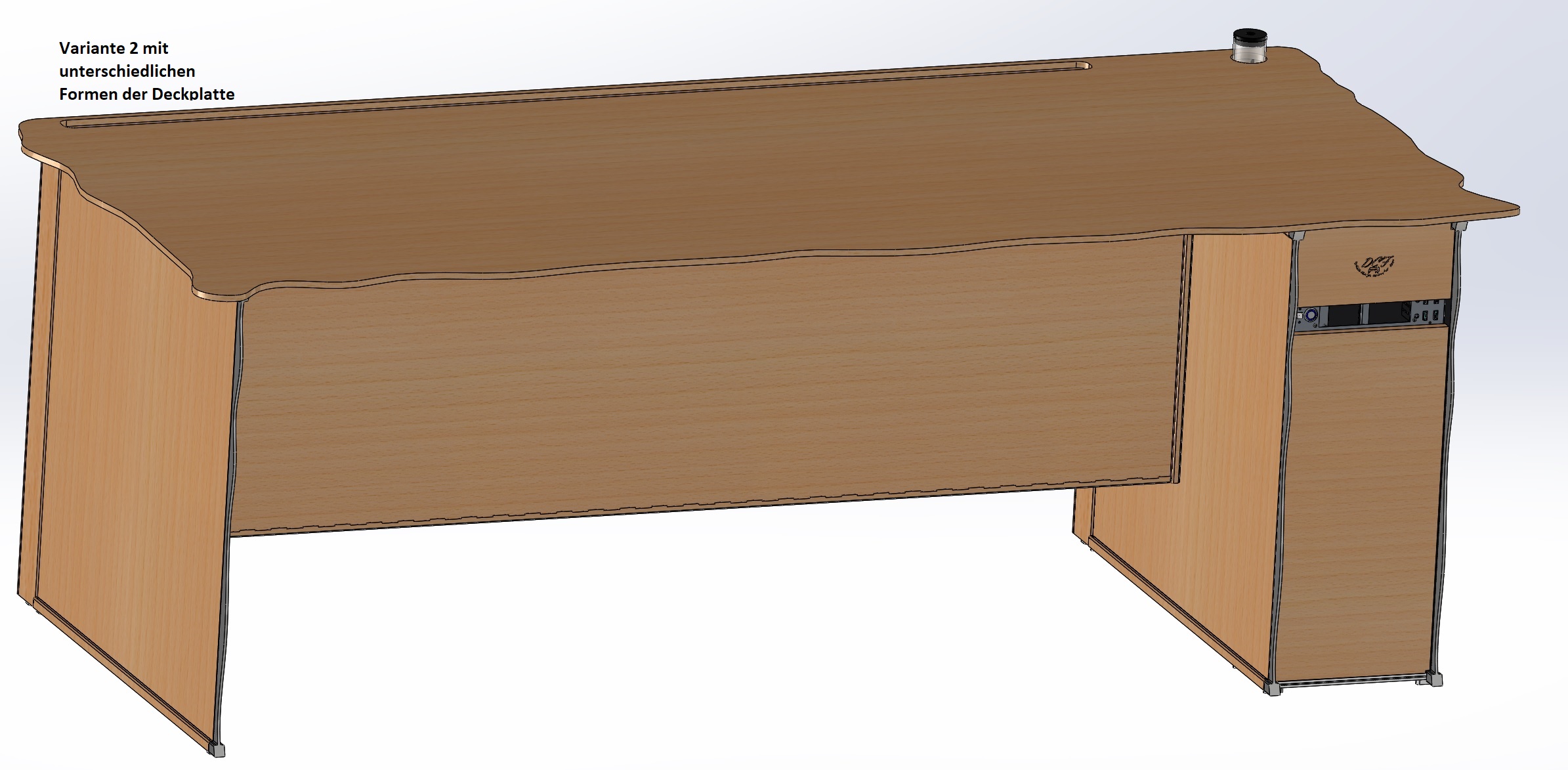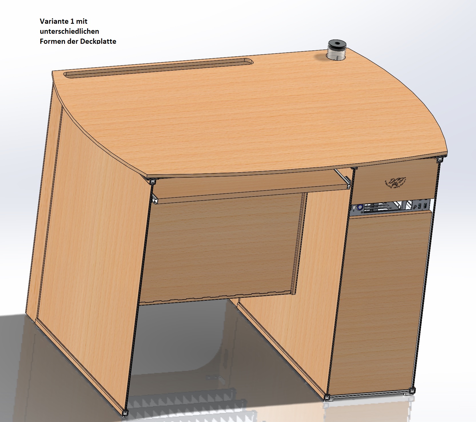 - Vom Design ein üblicher Computer/Bürotisch aus Holz