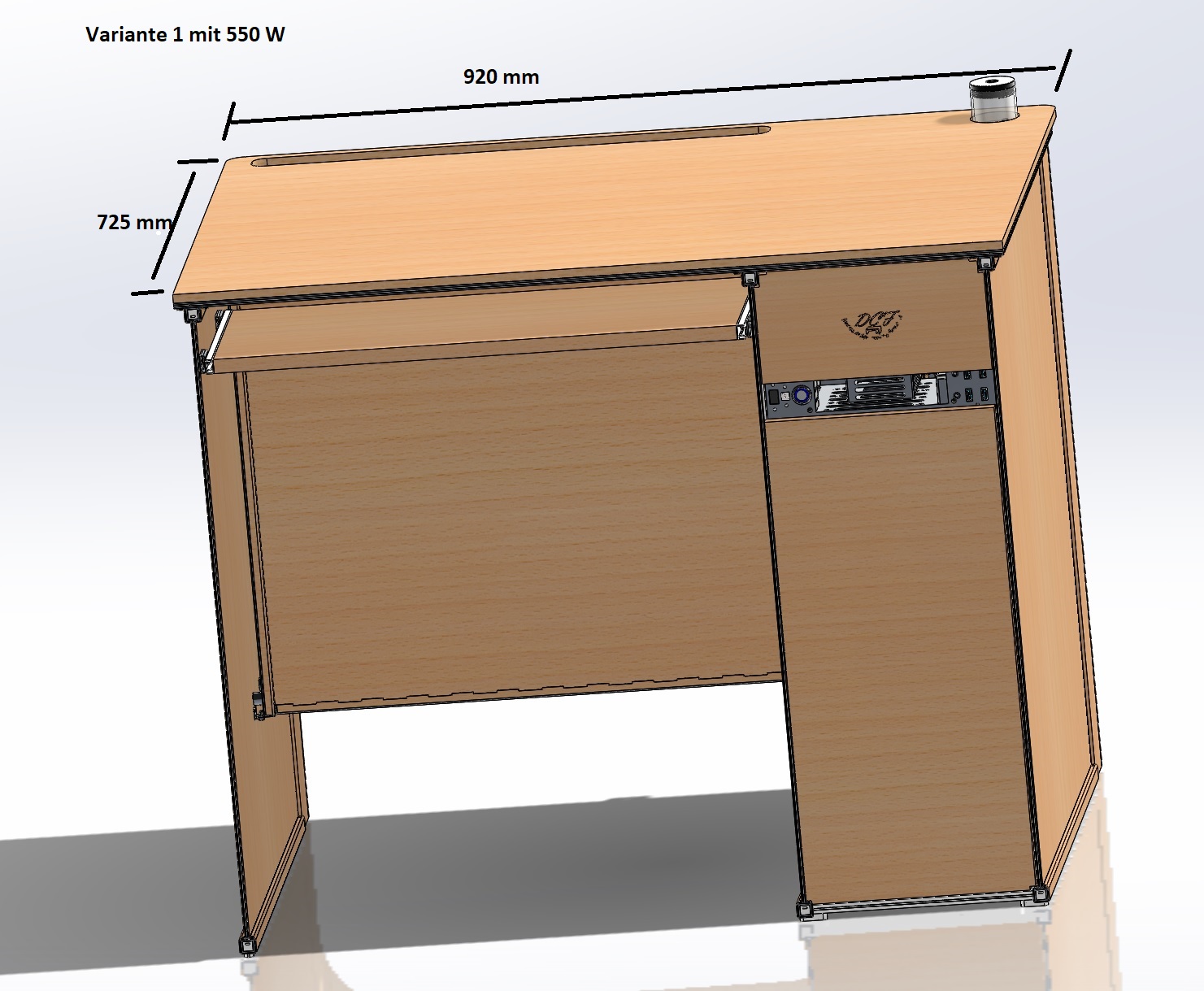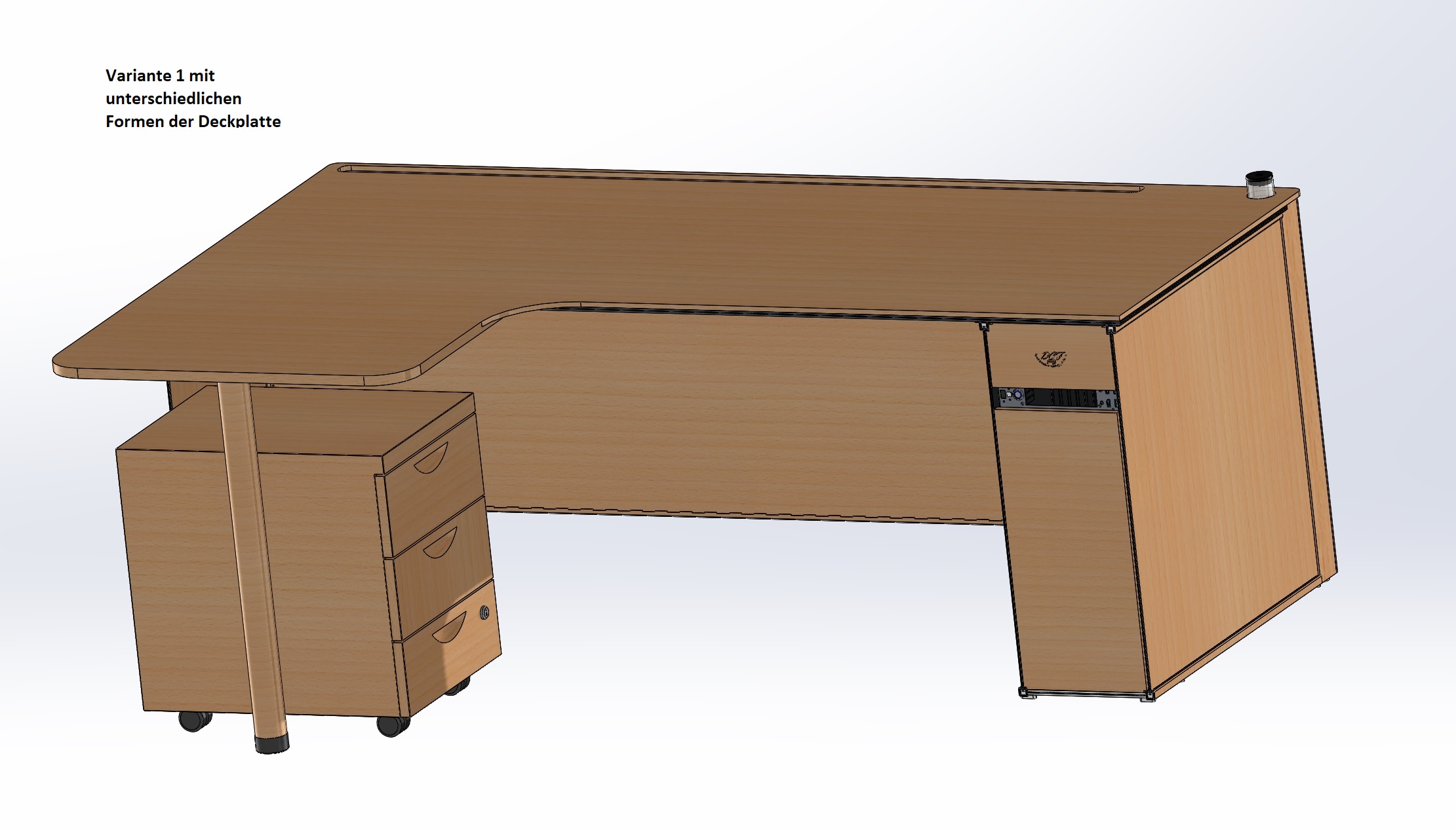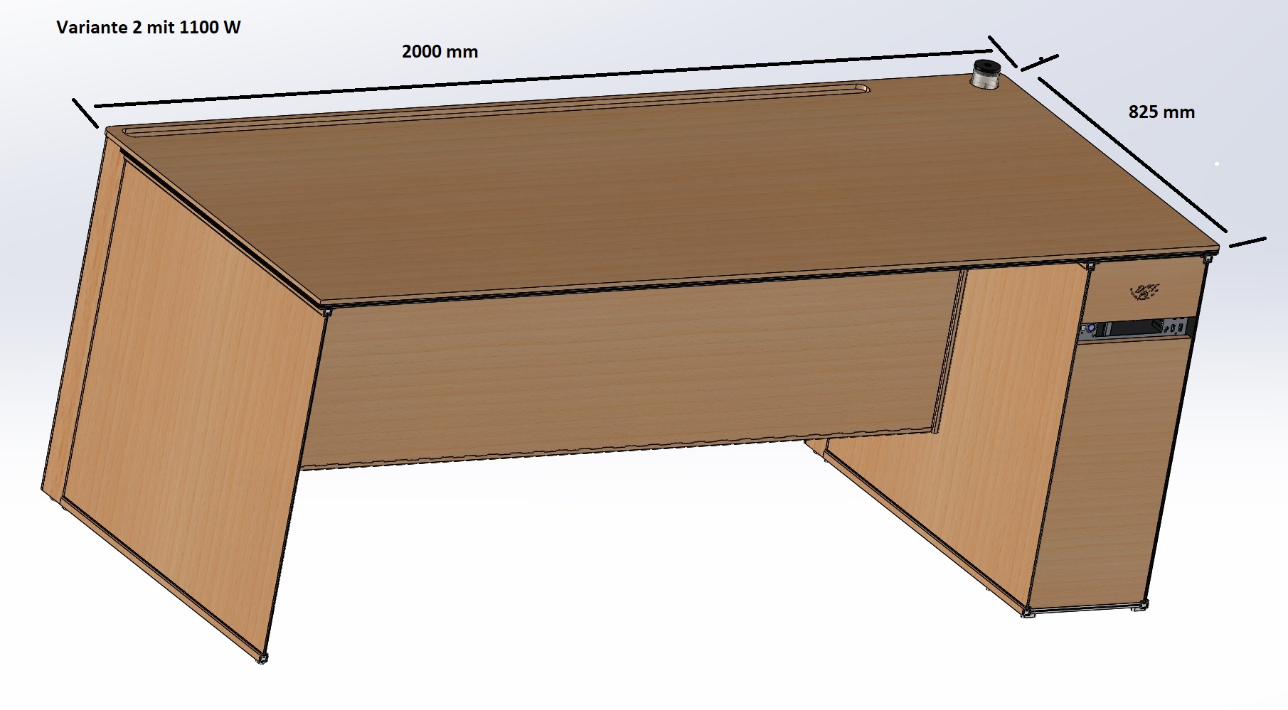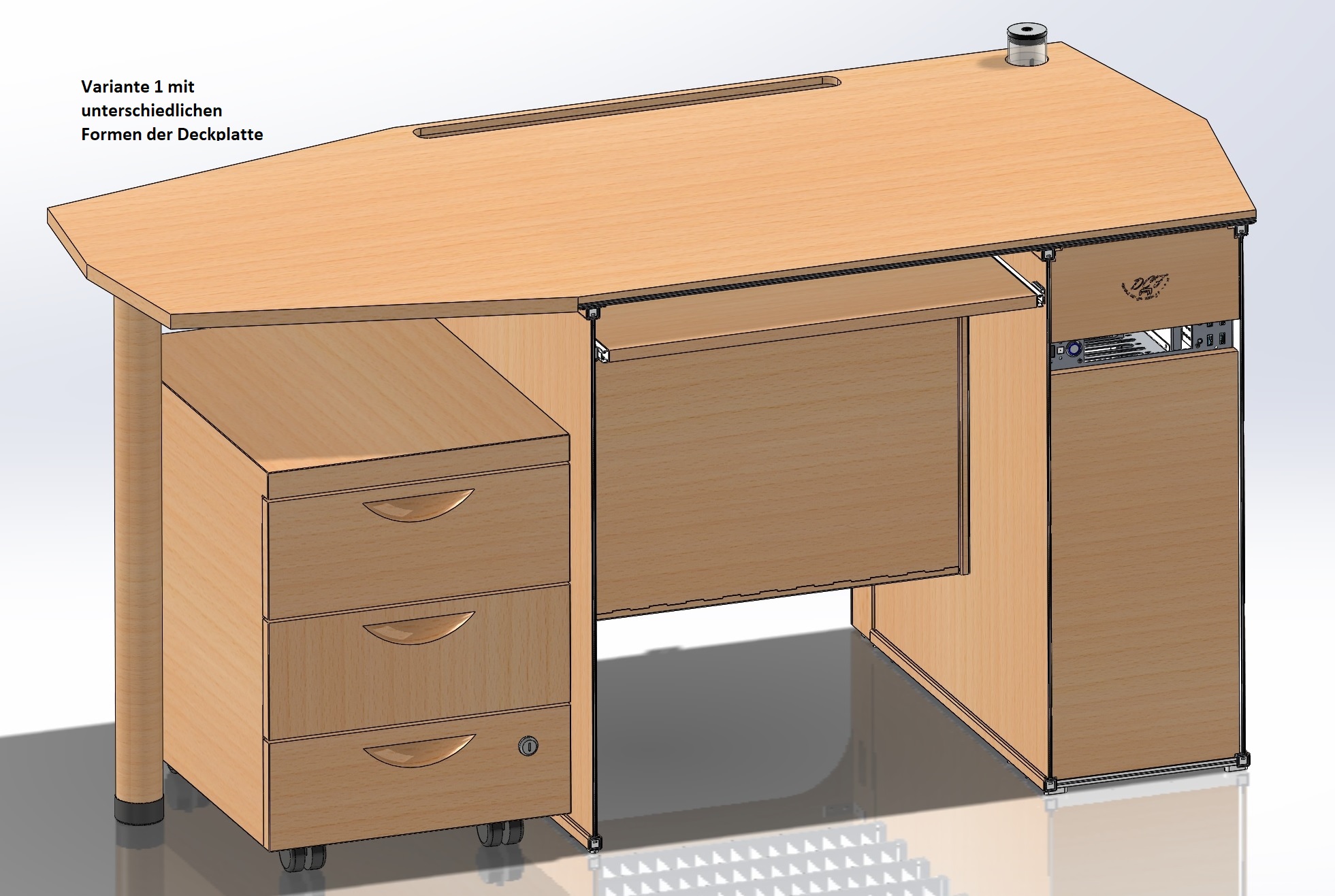 - Vom Design ein üblicher Computer/Bürotisch aus Holz