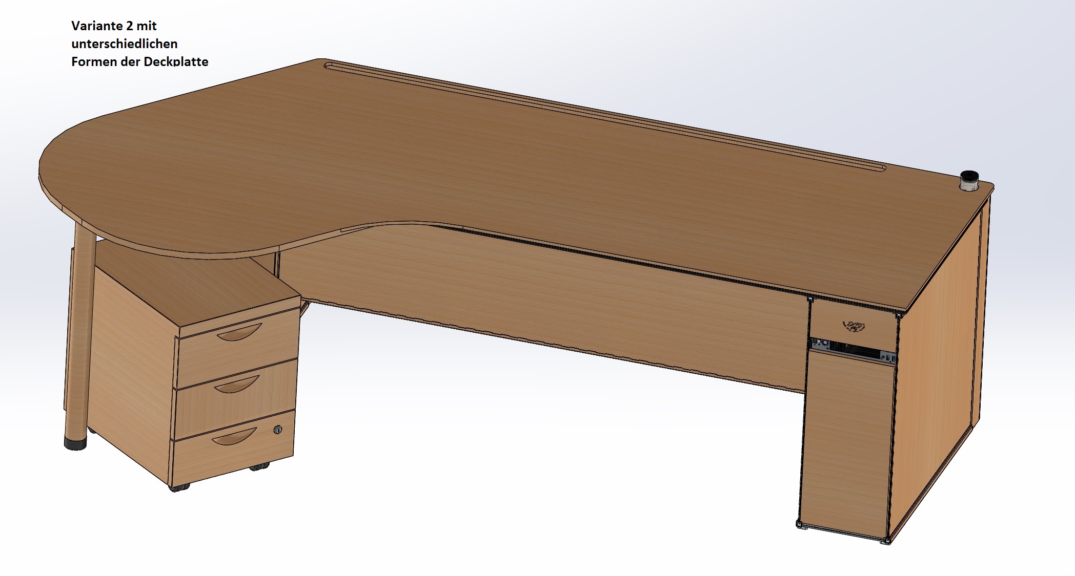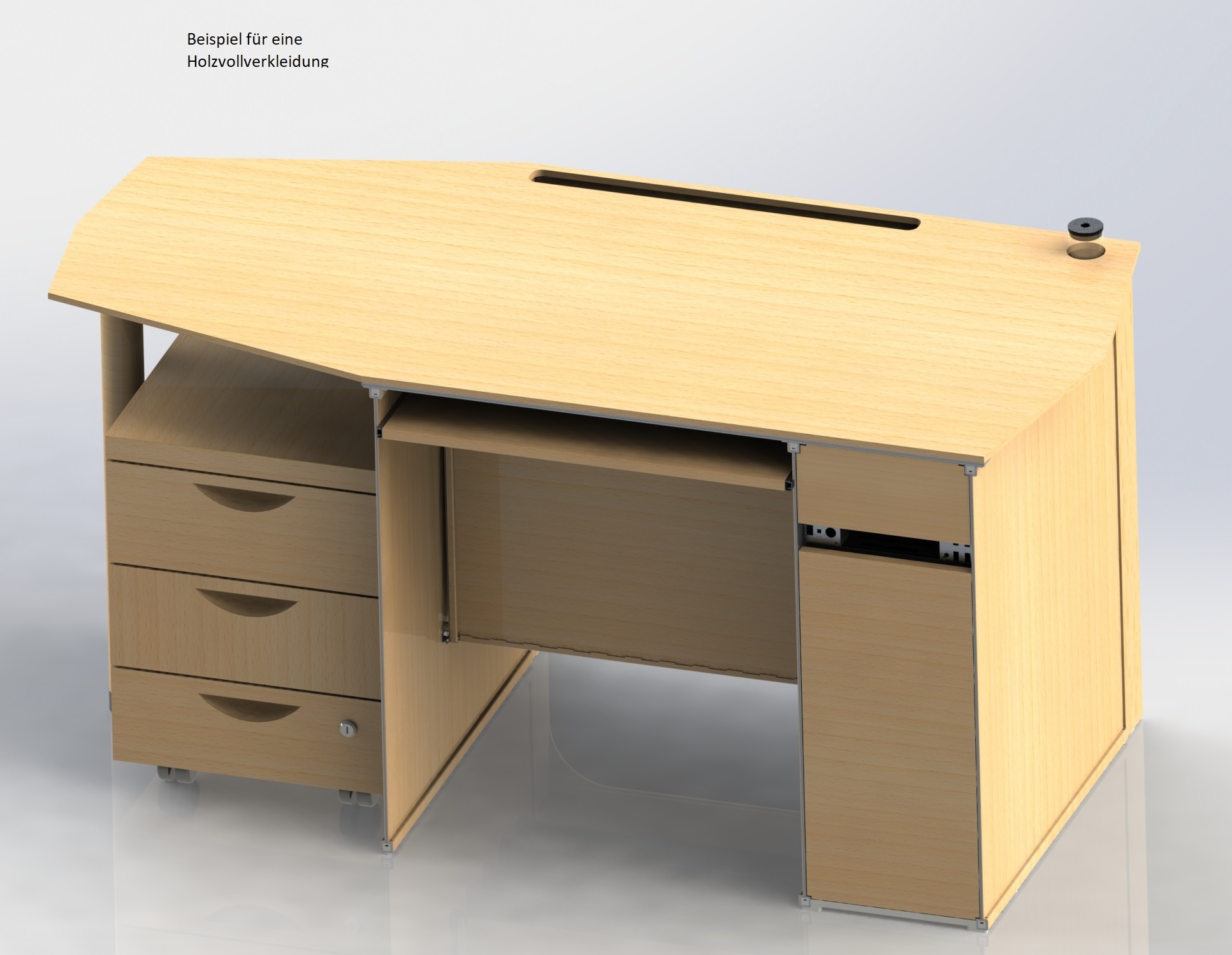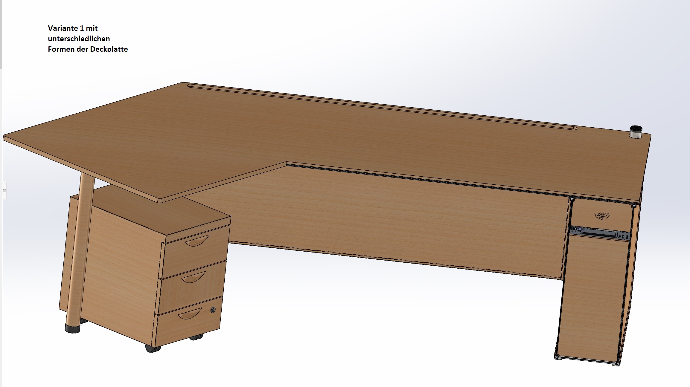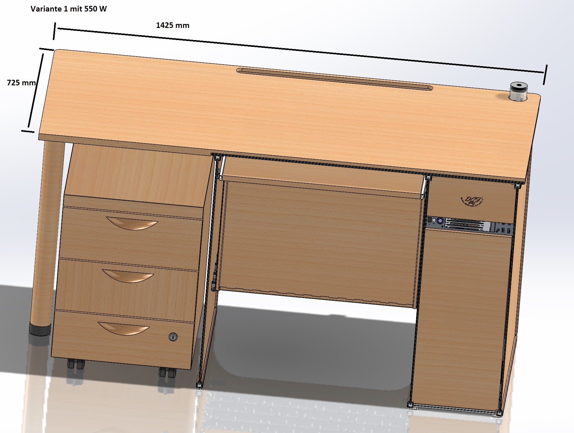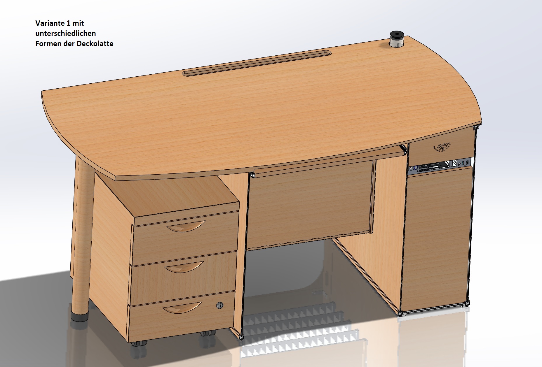 - Vom Design ein üblicher Computer/Bürotisch aus Holz