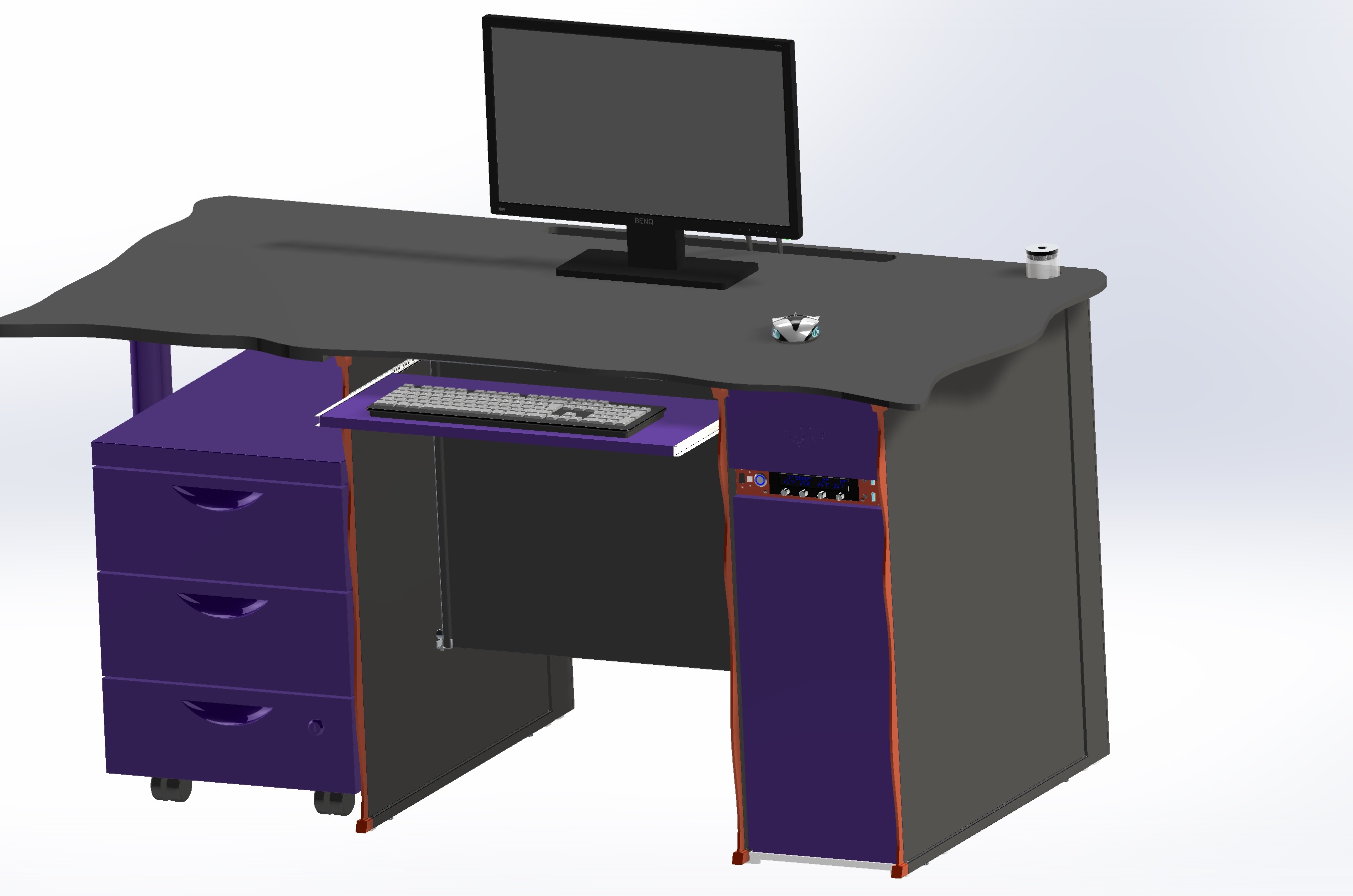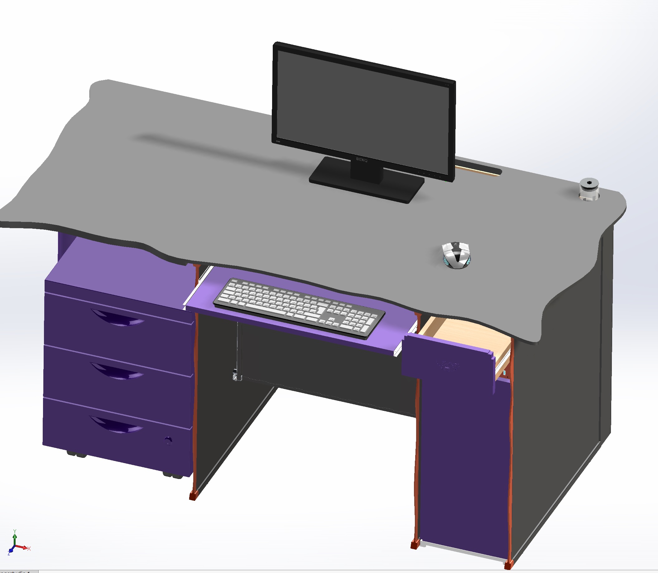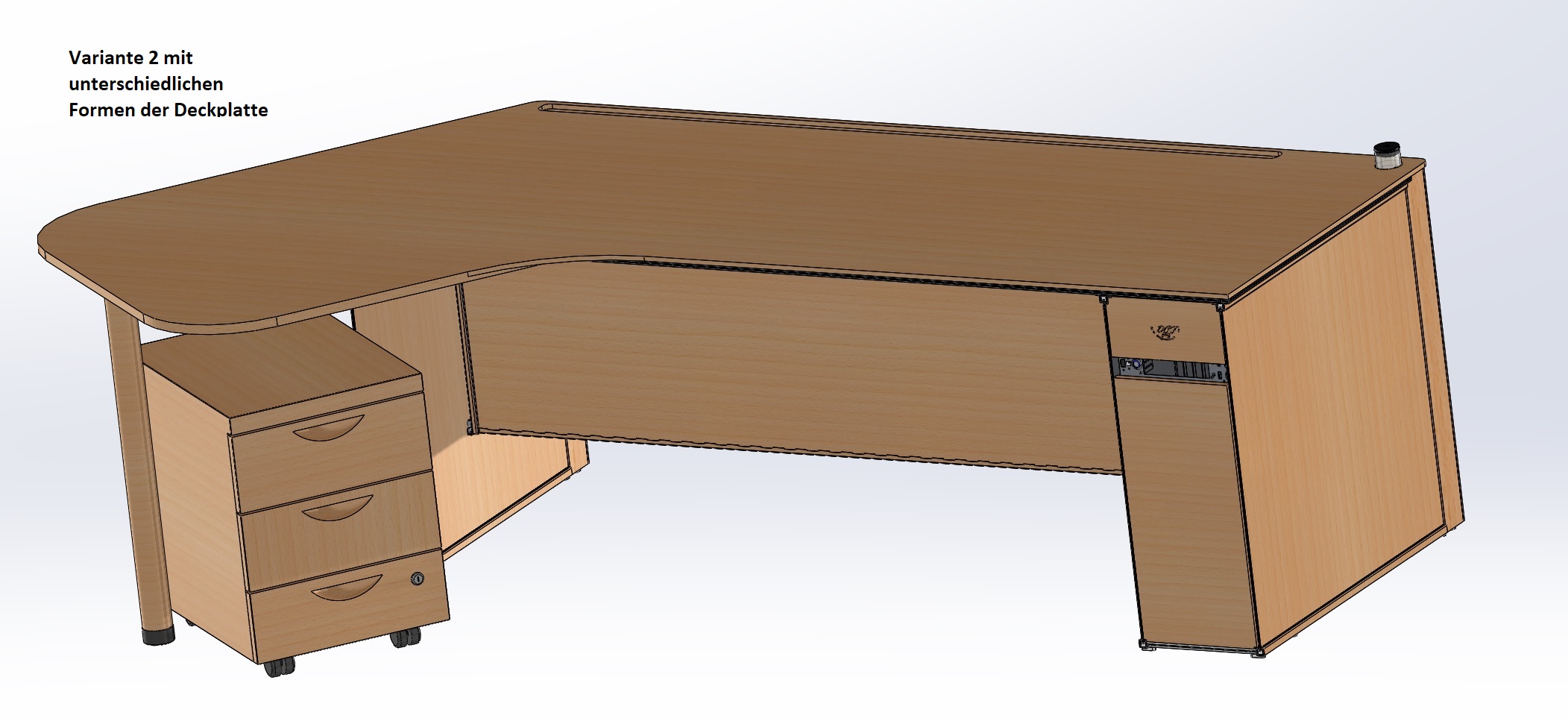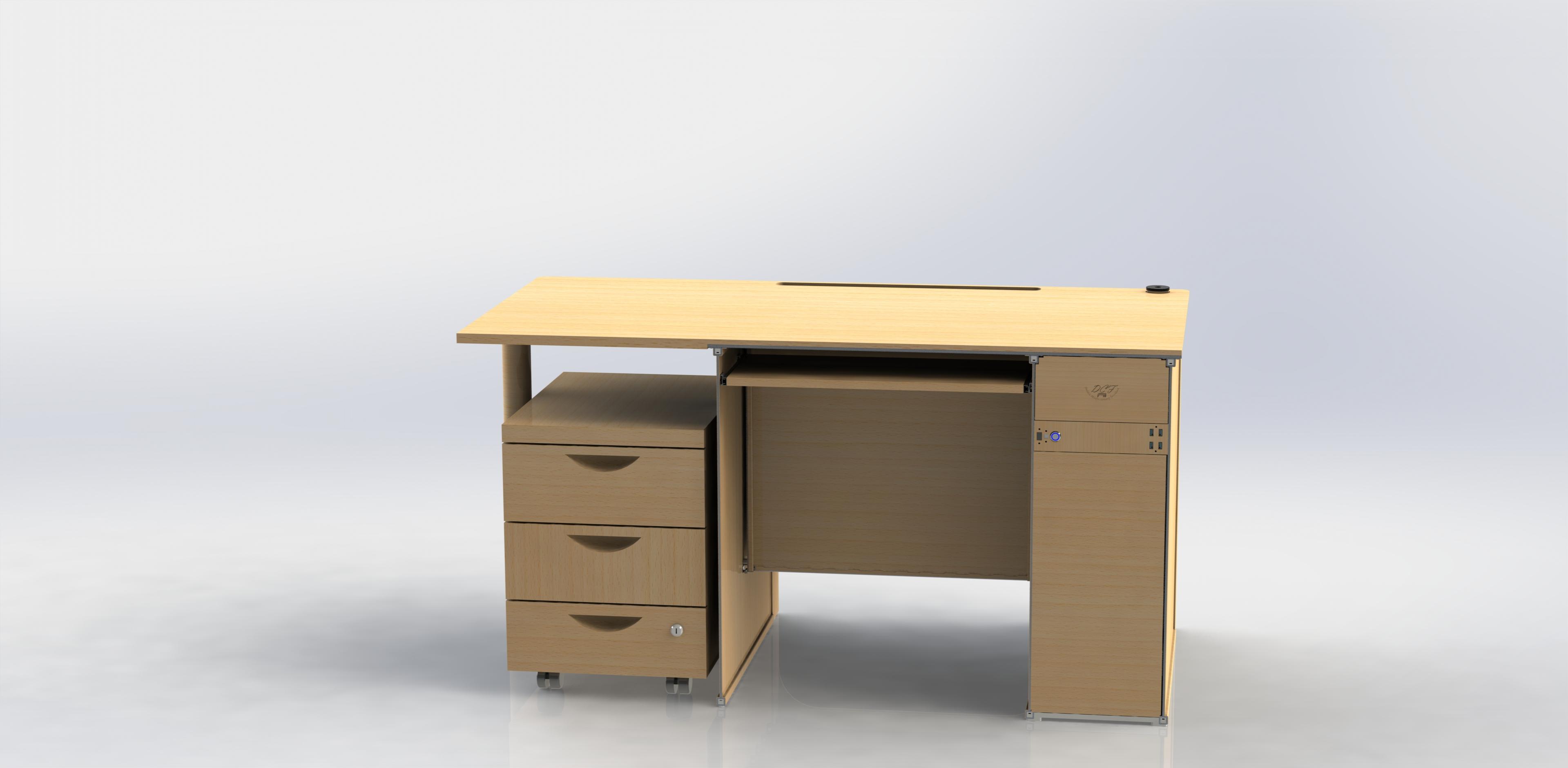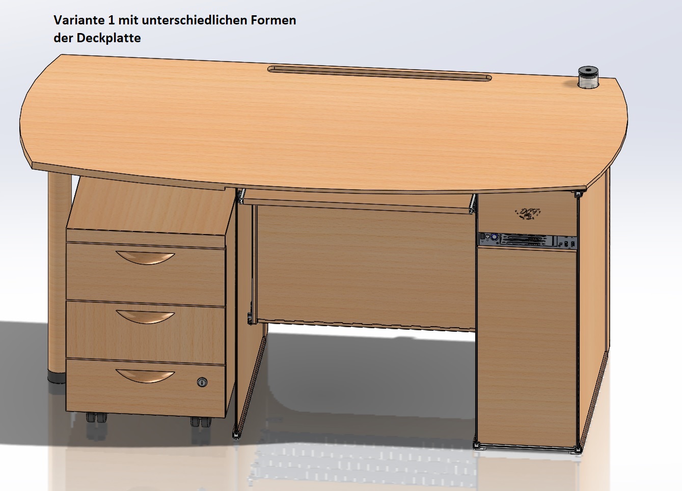 - Vom Design ein üblicher Computer/Bürotisch aus Holz