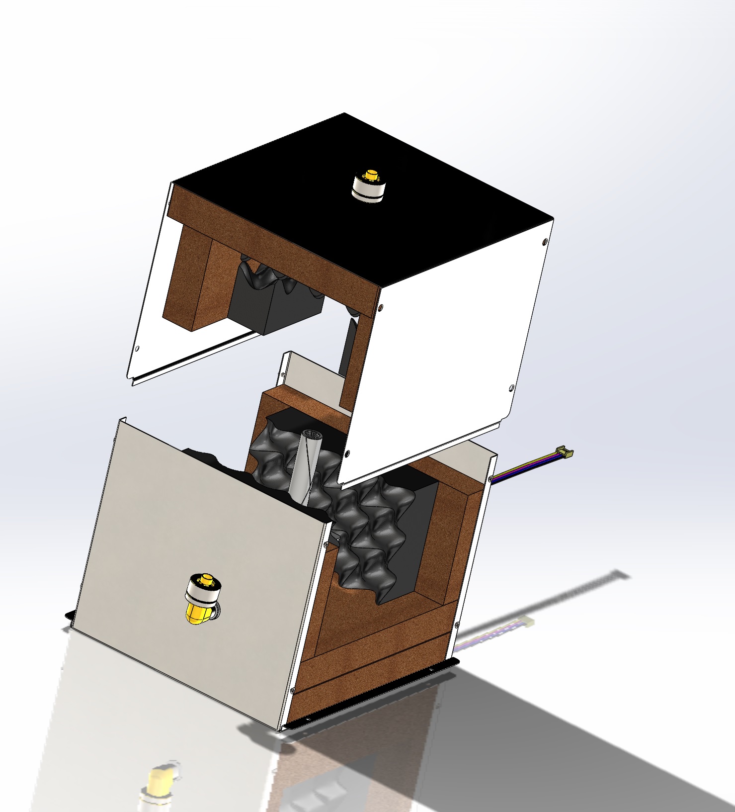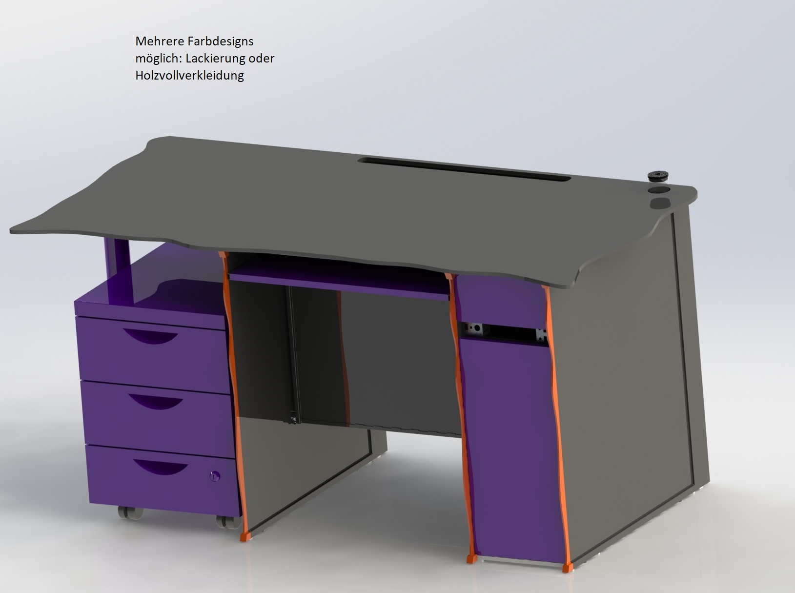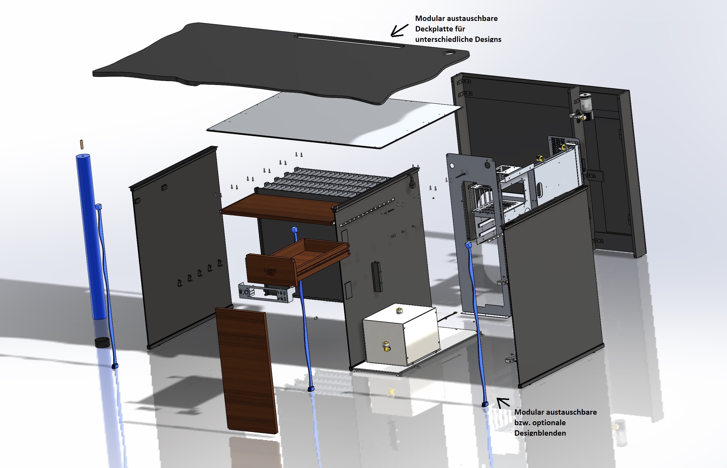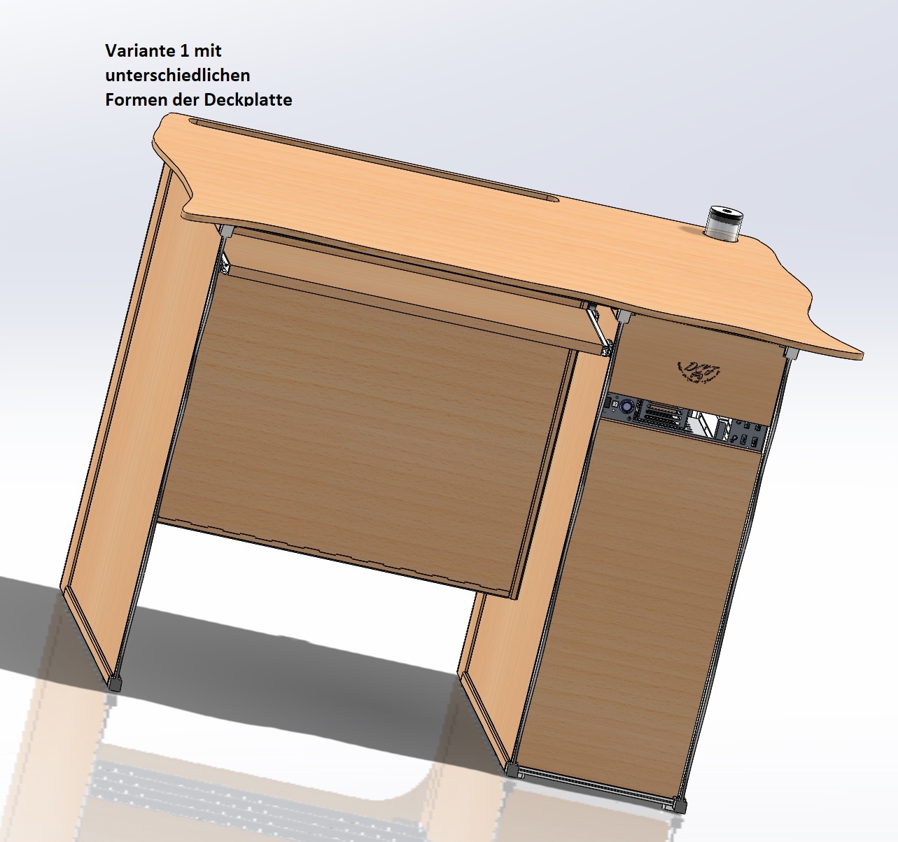 Von der V1 soll es von der Tischform bis zu acht verschieden Design geben. Die Design sind modular austauschbar. Einmal als Holzvollverkleidung und Glanzlack. In unterschiedlichen Farbvariationen und Holzarten.