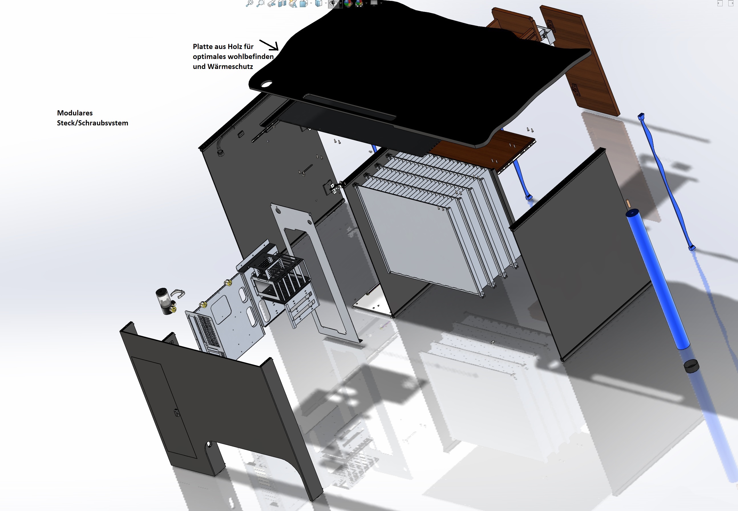 Ich habe ich mal etwas mit einem modular aufbauenden Passivwärmetauscher befasst, der zugleich Computertisch, PC-Gehäuse und Passivwärmetauscher in einem ist. Das System ist modular und lässt sich einfach zusammen stecken/schrauben. Es sind somit mehrere Designs möglich.