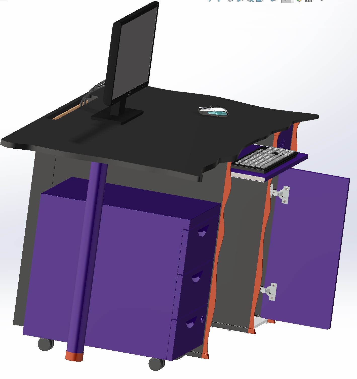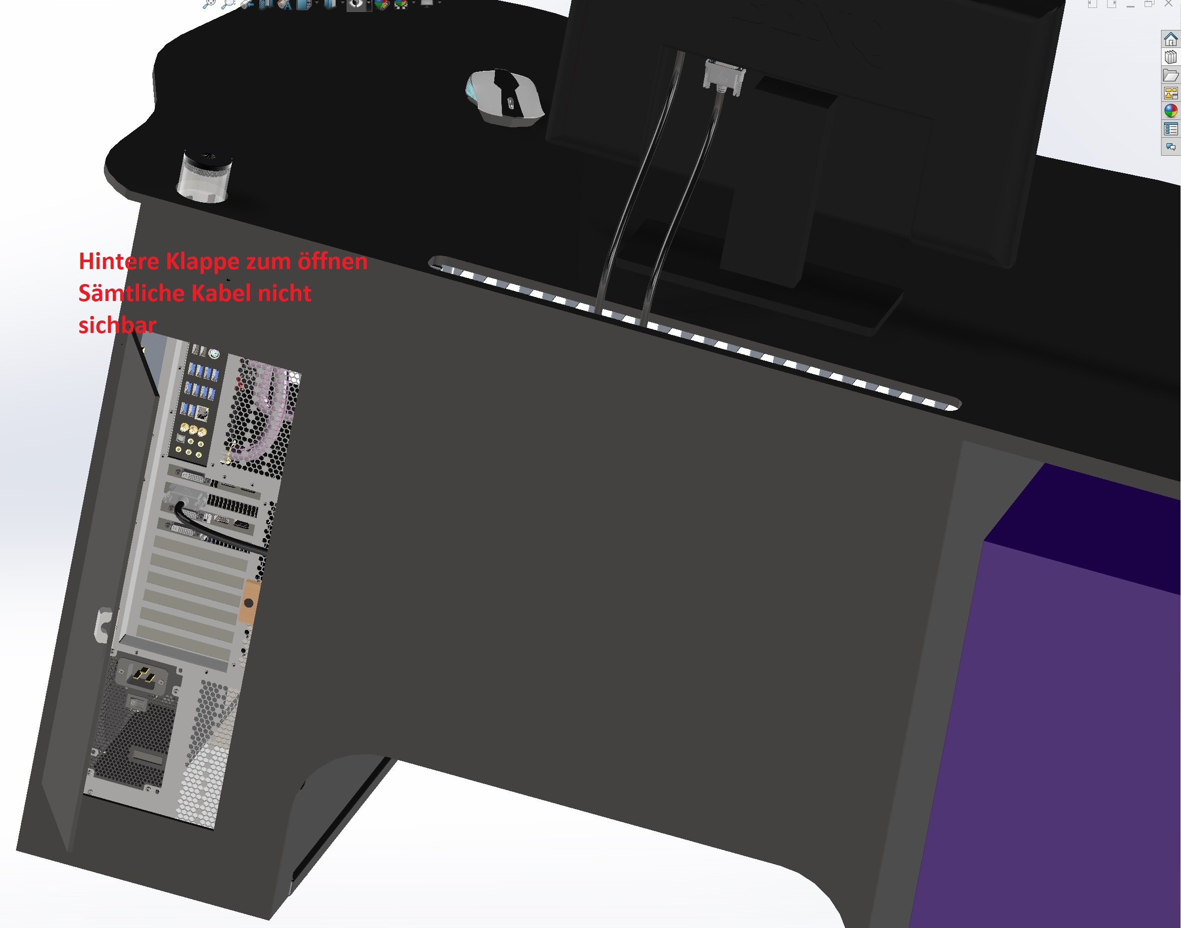 - keine sichtbaren Kabel, außer evtl. dem Mauskabel sowie ein Teil vom Monitorkabel und der Hauptstromversorgung
