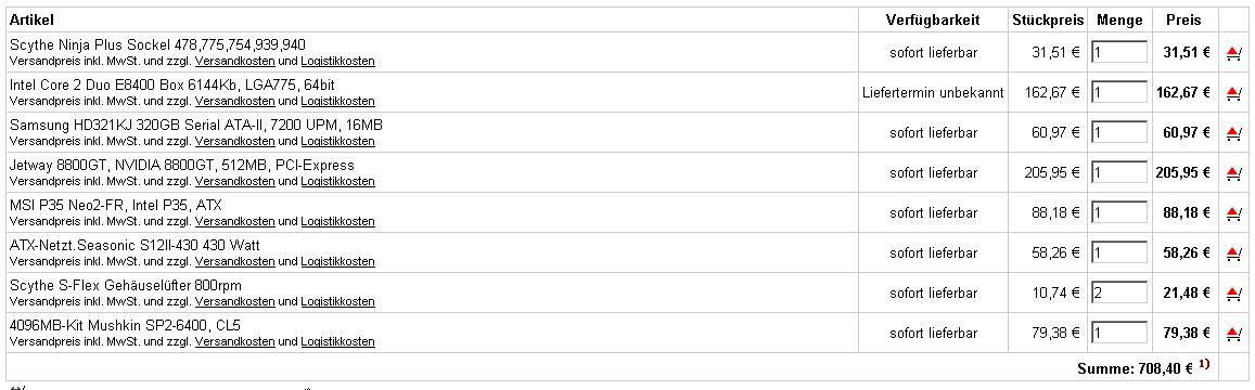 Der Prozessor intel 8400 ist ja nicht verfügbar, den würde ich einfach irgendwo bestellen wenn er mal zwischendurch irgendwo im laden steht ;-)