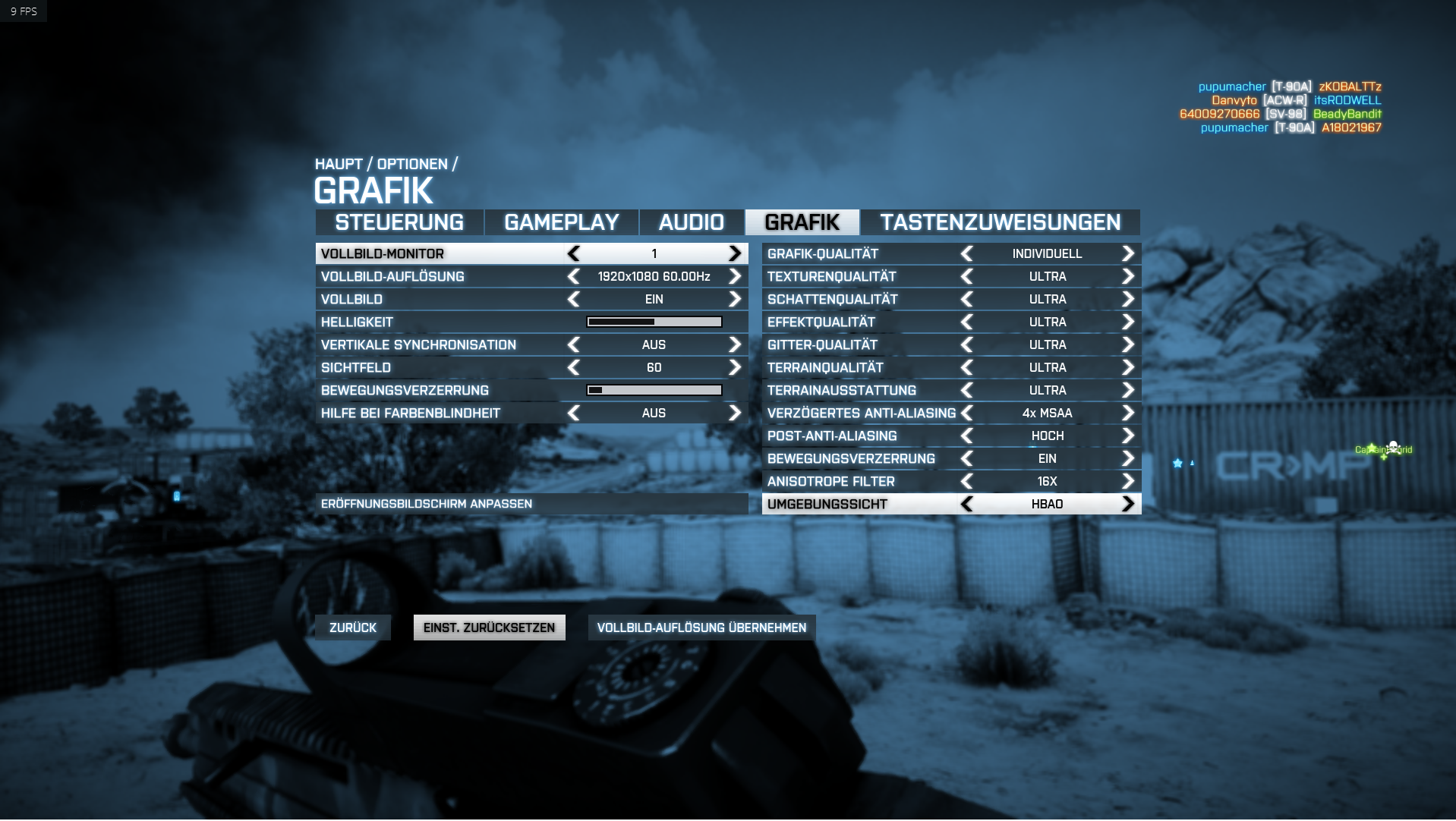 Origin FPS Anzeige sagt 9fps, und so fühlt es sich auch an.