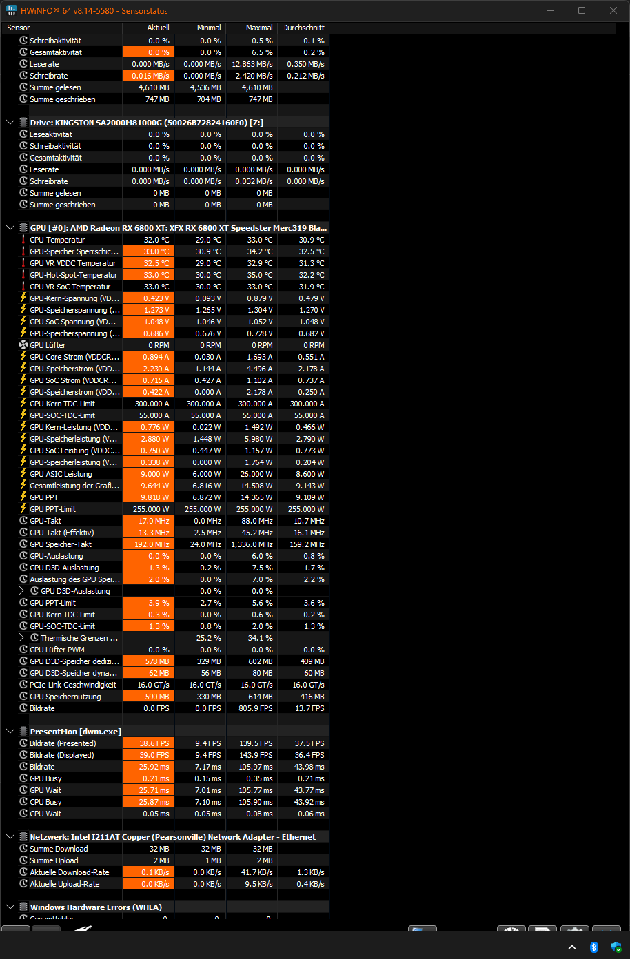 Dann das HW Info Fenster ganz groß machen und alles davon einmal als Screenshot hier posten.