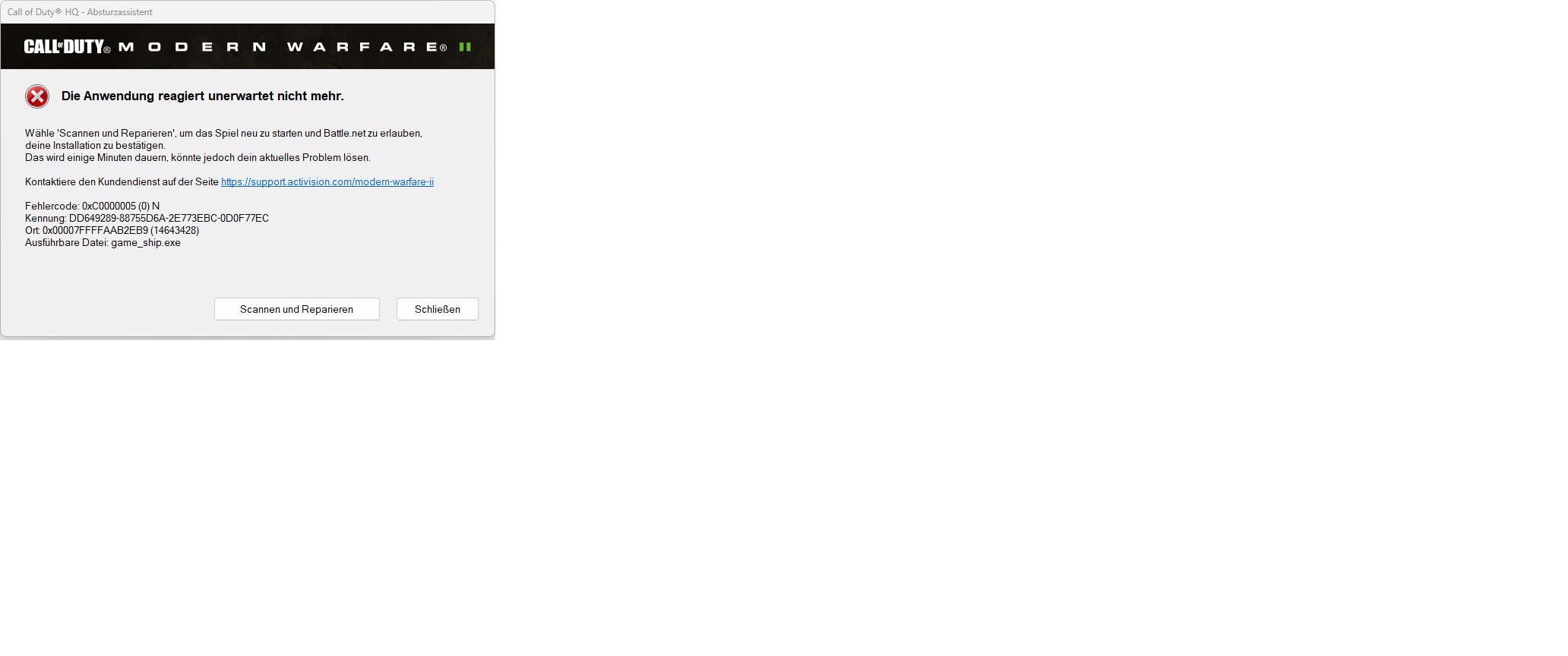 Bei Modern Warefare 2 kann es sein das es direkt beim Laden, nach 2 Minuten oder erst nach 5 Minuten spielen abstüzt. Dann aber direkt entweder mit gameship.exe (Beispiel-Bild unten im Anhang) oder dirext X error.